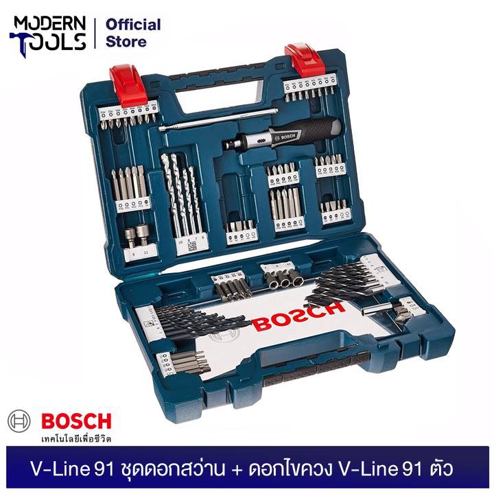 BOSCH ชุดไทเทเนียม V-Line Bosch 91 ชิ้น สำหรับการเจาะและการขันสกรู #2607017402 | MODERNTOOLS OFFICIAL