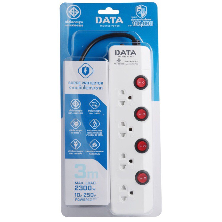 DATA HM4496 ปลั๊กไฟ มอก 4 ช่อง 4 สวิตซ์ 2300W 3 เมตร มอก.2432-2555 | MODERNTOOLS OFFICIAL