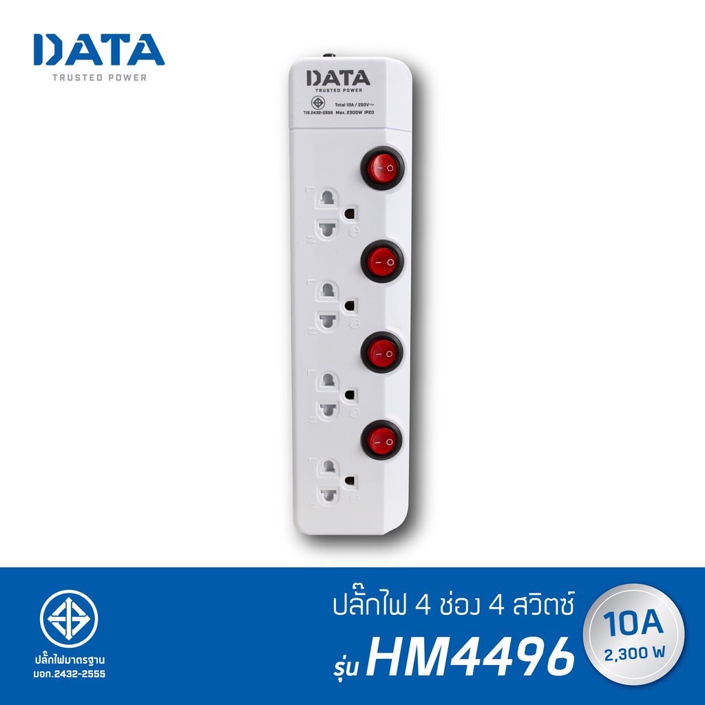 DATA HM4496 ปลั๊กไฟ มอก 4 ช่อง 4 สวิตซ์ 2300W 5 เมตร มอก.2432-2555 | MODERNTOOLS OFFICIAL
