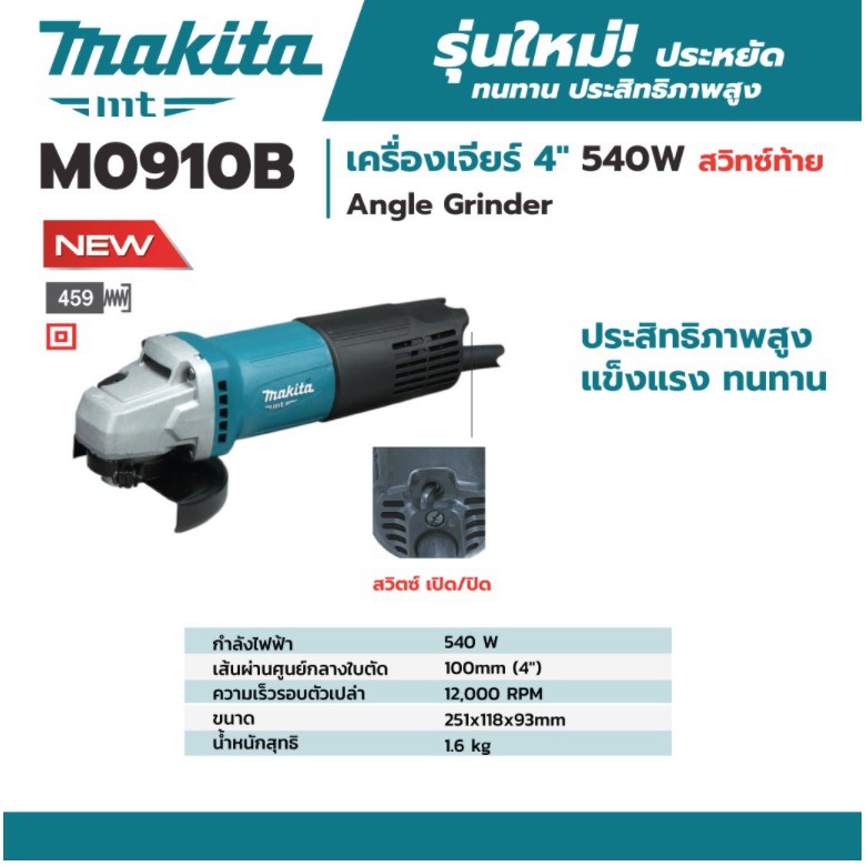 MAKITA M0910B เครื่องเจียร 4 นิ้ว 540W สวิทซ์ท้าย รับประกัน 6 เดือน ศูนย์ MAKITA** | MODERNTOOLS OFFICIAL