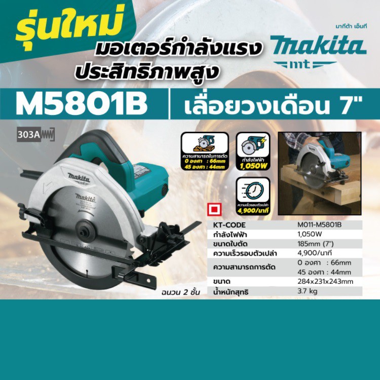 MAKITA M5801B เลื่อยวงเดือน 7 นิ้ว 1050 W พร้อมใบ 40ฟัน 1 ใบ รับประกัน 6 เดือน | MODERNTOOLS OFFICIAL