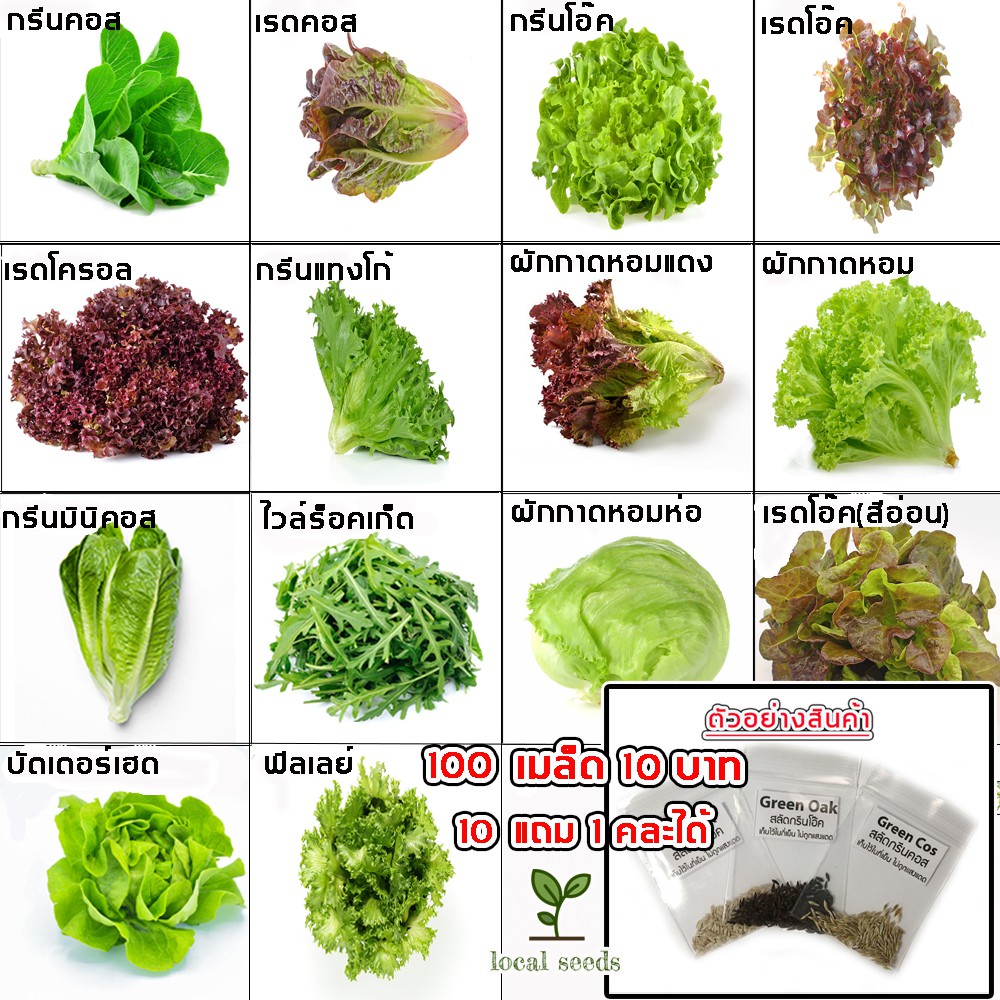 [ขายดีอันดับ 1]🌱เมล็ดผักสลัด 100-300 เมล็ด 10 บาท 📌งอกดีมีคู่มือการปลูก [10 แถม 1 คละได้] / เมล็ดพันธุ์ผักสลัด อินทรีย์