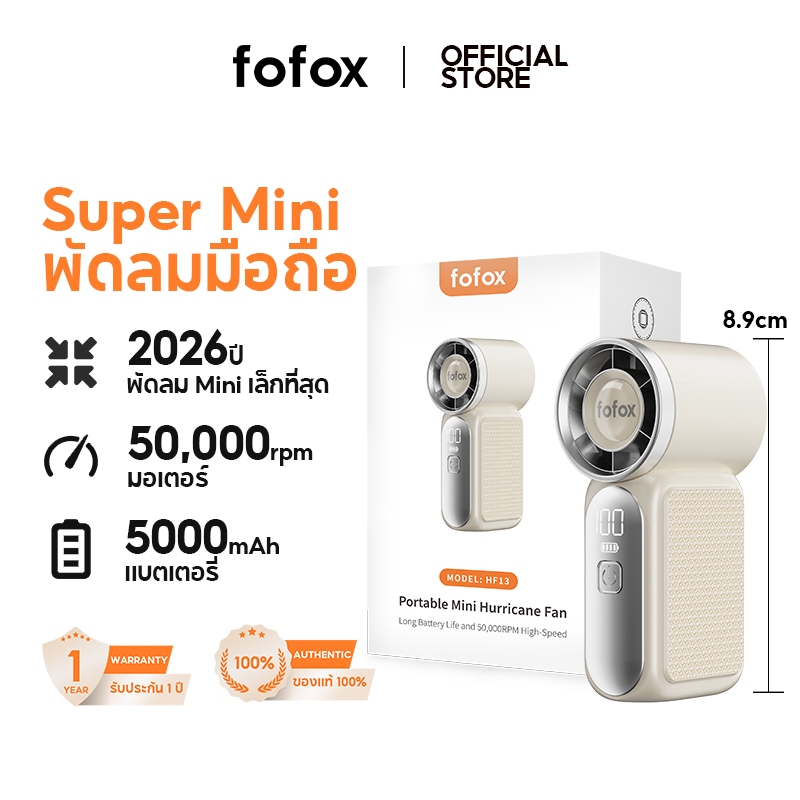 【เล็กที่สุดใ นปี 2026】fofox HF13 พัดลมพกพา พัดลมขนาดเล็ก พัดลมขนาแบบพกพา 5000mAh ใช้งาน 20ชม ลมแรง เงียบ พัดลมมือถือ