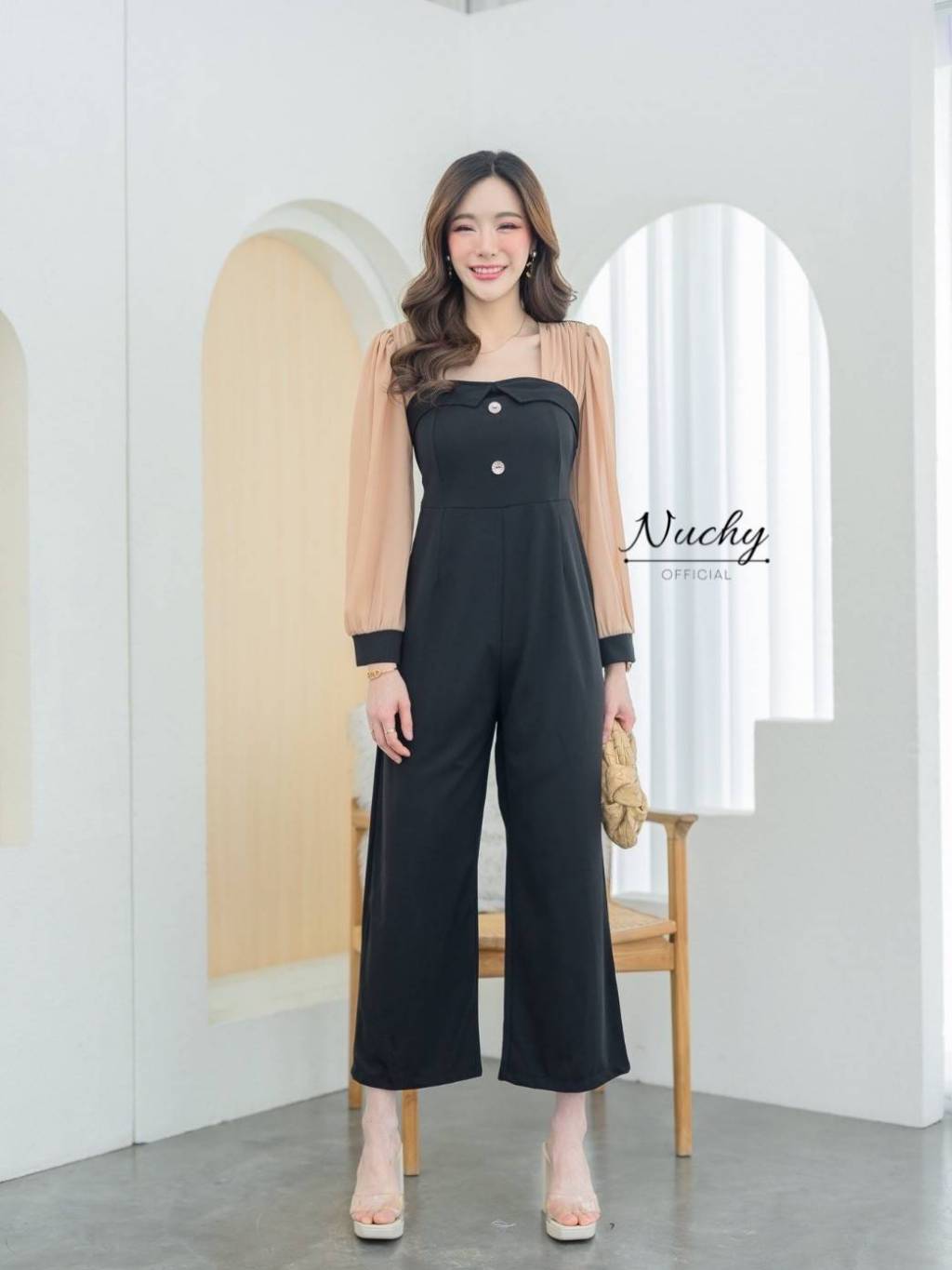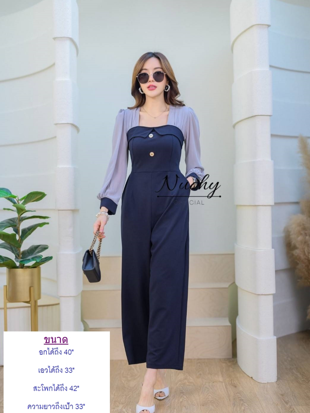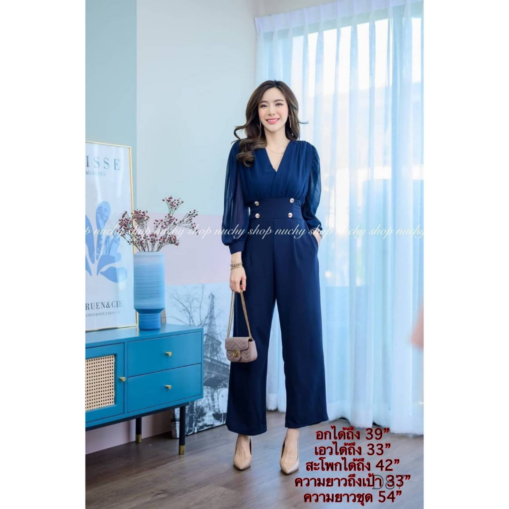 จั๊มสูทขายาว จั๊มแขนยาว jumpsuit Fashion จั๊มสาวอวบ อก40 แฟชั่นสาวอวบ