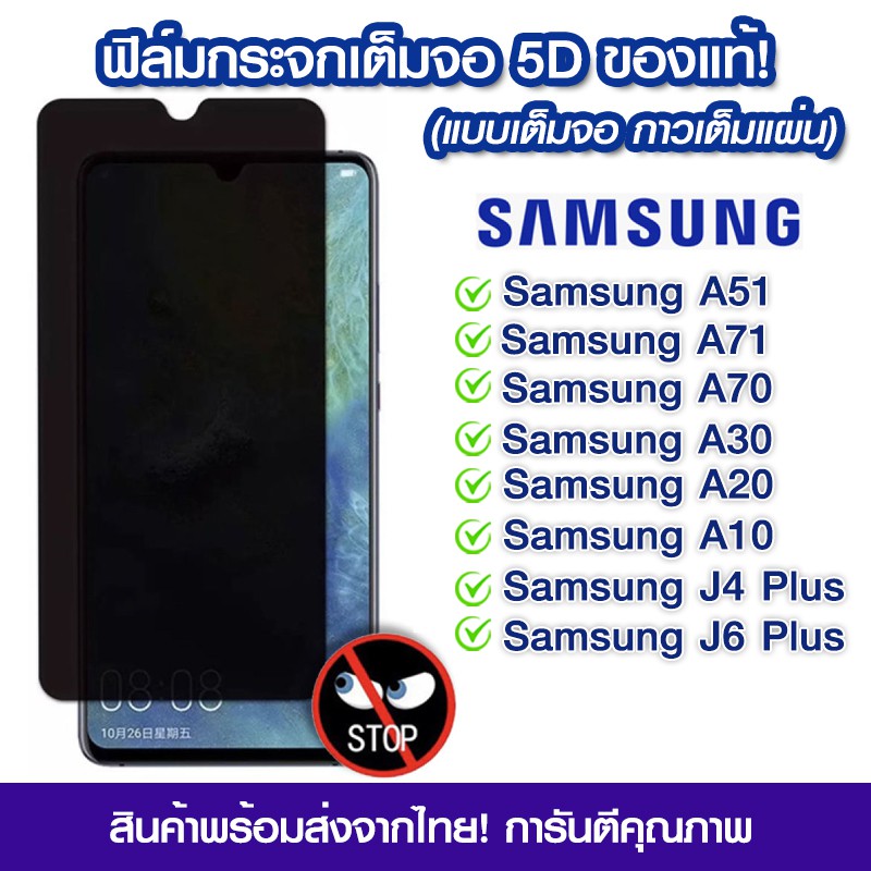 ฟิล์มกันมอง Samsung ฟิล์มกระจกกันมอง ฟิล์มกันเสือก เต็มจอ Samsung A51/A71/A10/A20/A30/A70/J4 Plus/J6 Plus