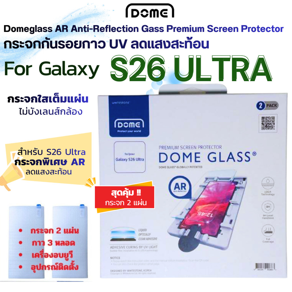 DomeGlass กระจกกันรอยกาวUV Galaxy S26 Ultra | S25U | S24U | S23U | S22U | S21U กระจกใสเต็มจอ