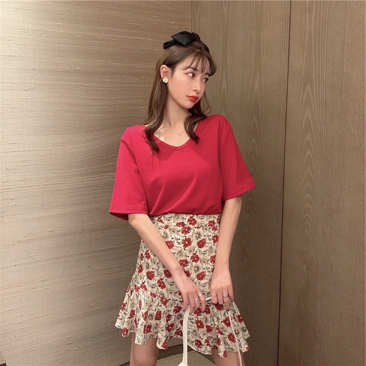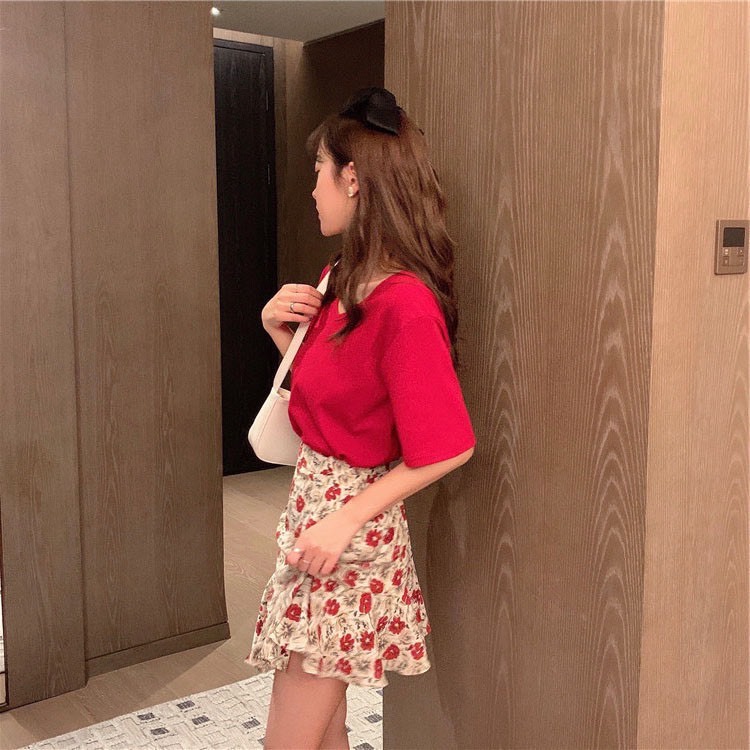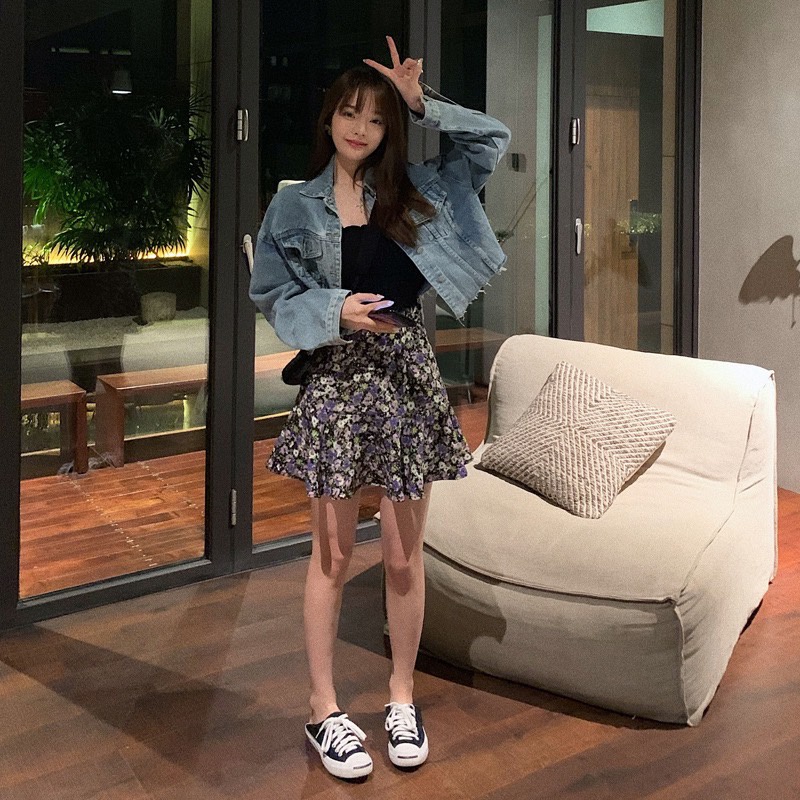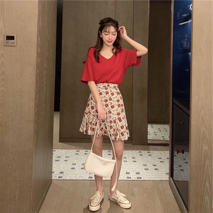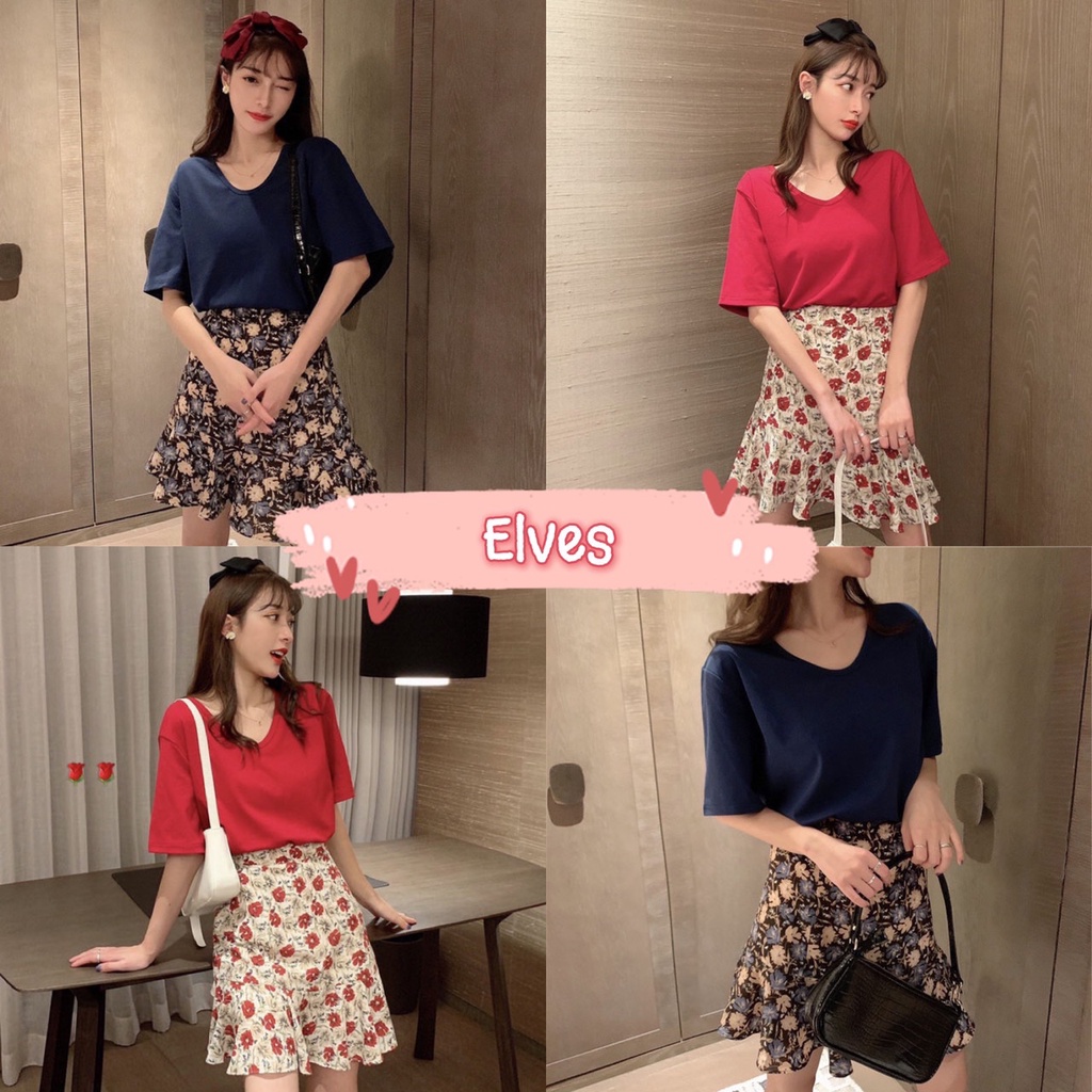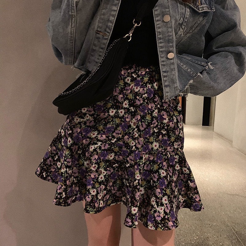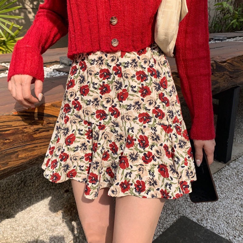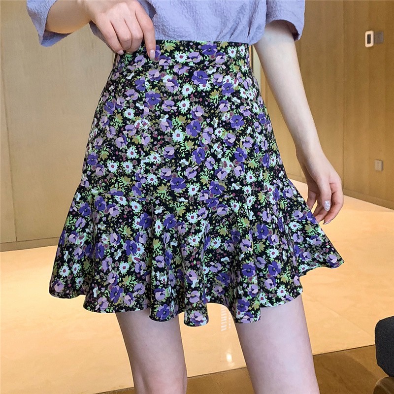 Elves✨พร้อมส่ง✨ กระโปรงทรงบาน ลายดอกไม้น่ารักสีสันสดใสสไตล์เกาหลีคิ้วท์ๆ ~ KU-CK-2 ~ 01