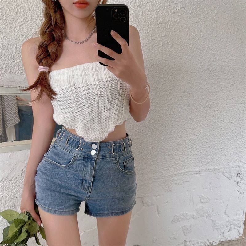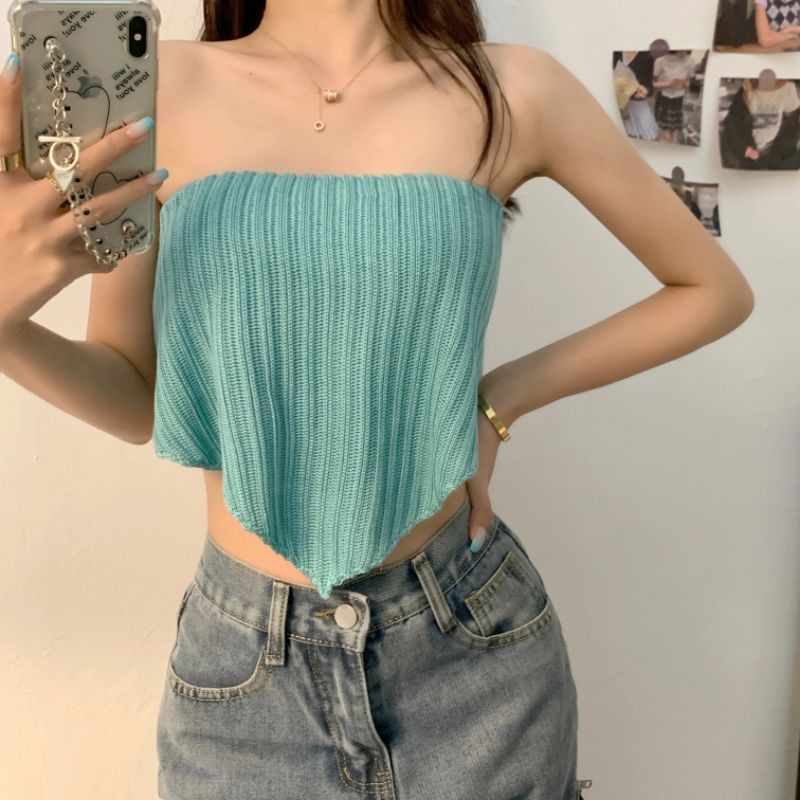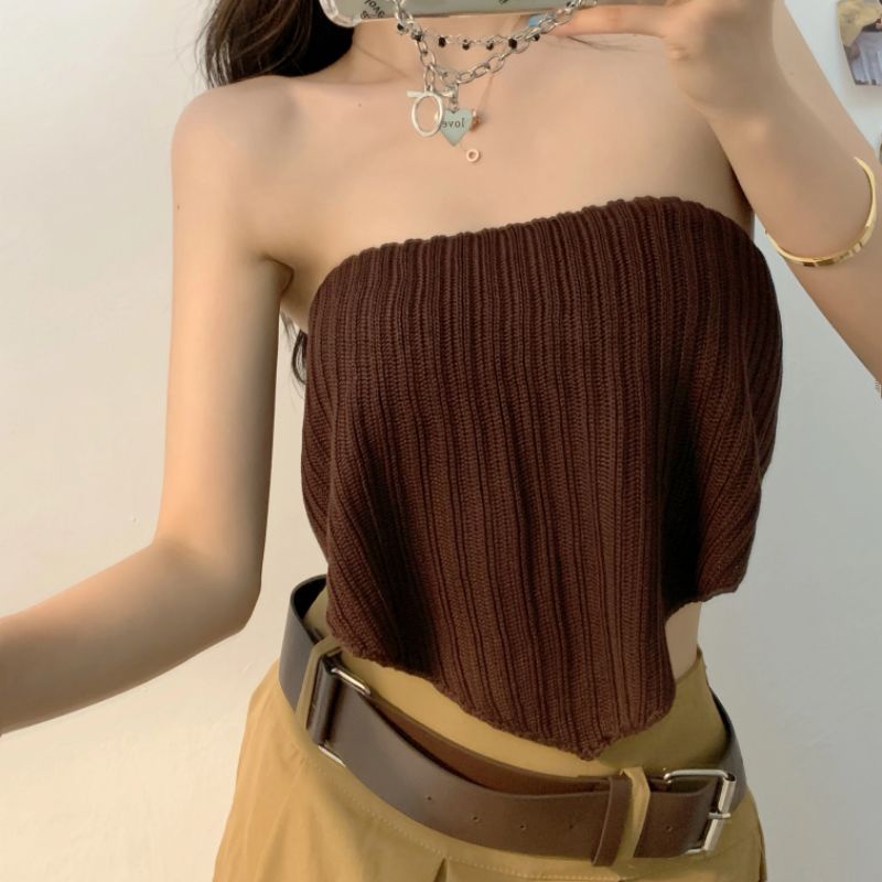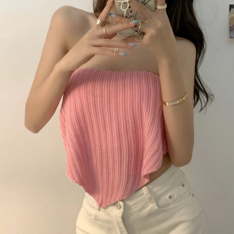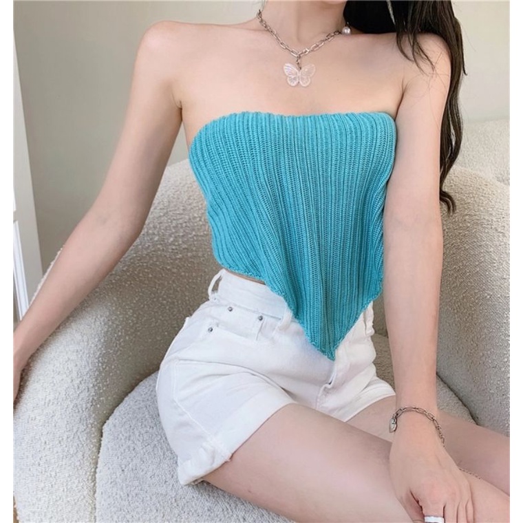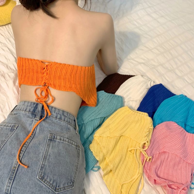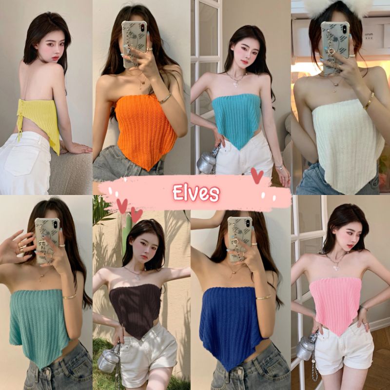 Elves✨พร้อมส่ง✨เสื้อเกาะอกแบบถักไหมพรมโชว์หลังสุดเซ็กซี่🍓*E203