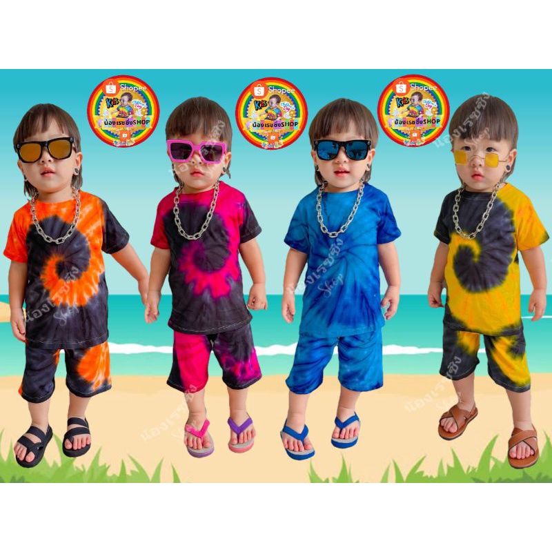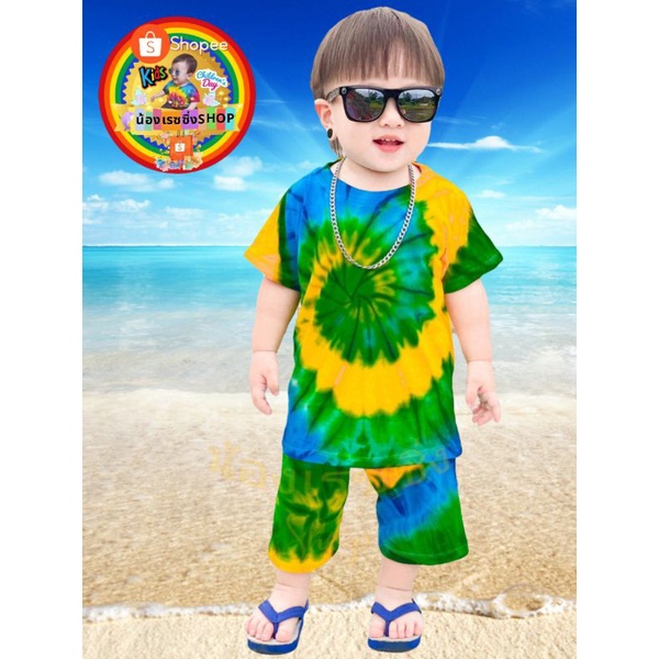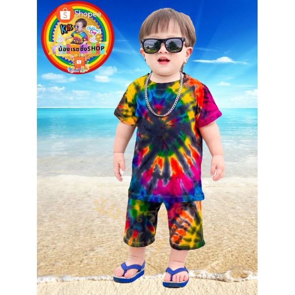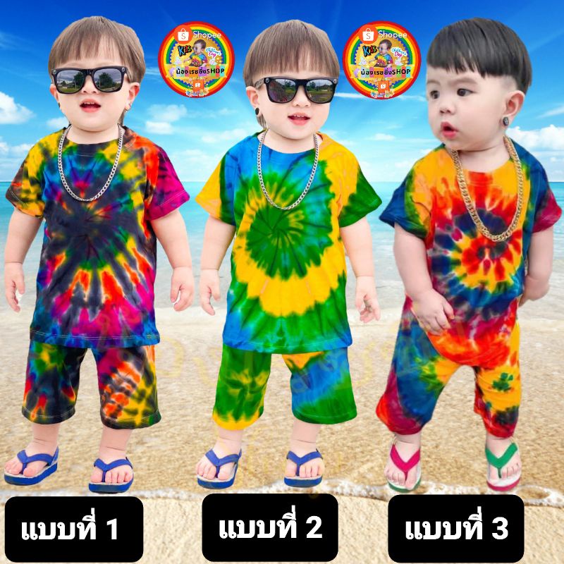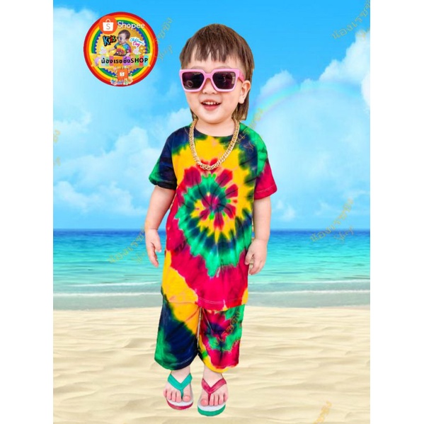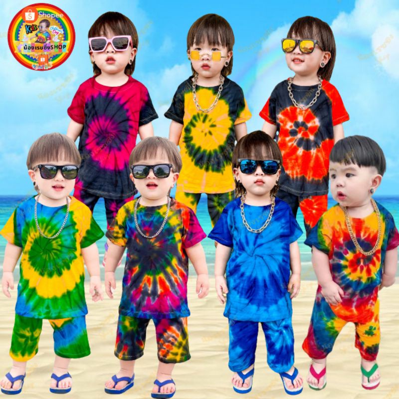 ‼️ราคาถูกที่สุด‼️ เสื้อมัดย้อมเด็กสีสันสดใส + กางเกงมัดย้อมขายาว🍭 🏖🏖🏖🍭 สำหรับเด็กน้ำหนัก 7 ➖ 27 กิโลกรัม 💯💯