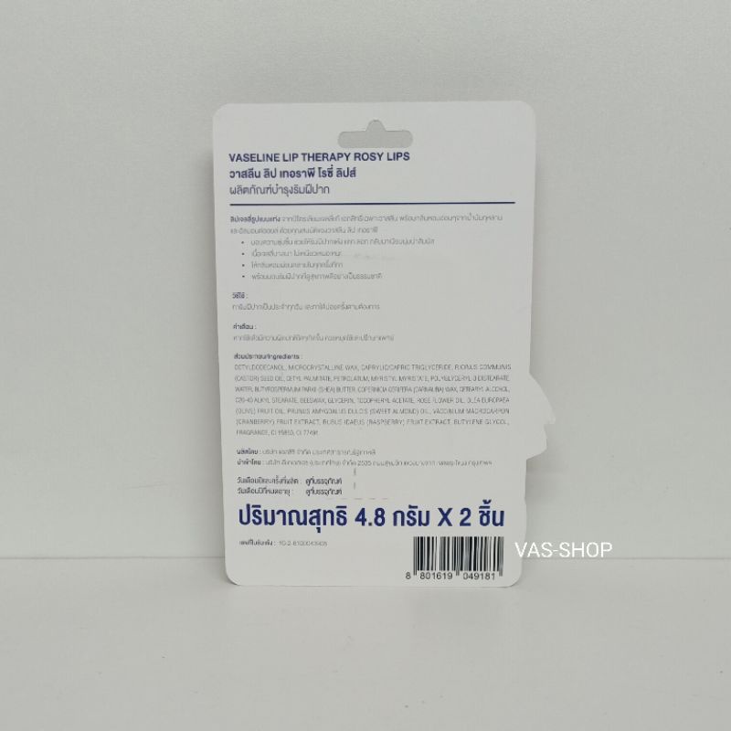 Vaseline วาสลีน ลิป เทอราพี โรซี่ ลิปส์ บำรุงริมฝีปาก 4.8 กรัม