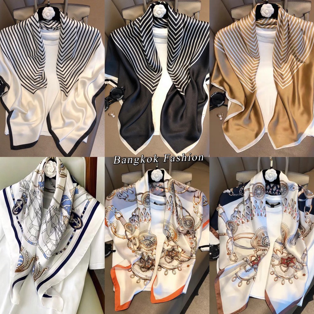 ผ้าซาติน ผ้าพันคอ คลุมไหล่ ไหมซาติน ขนาด 90*90ซม ราคาสุดคุ้ม ของมาใหม่ พร้อมส่งที่ไทย
