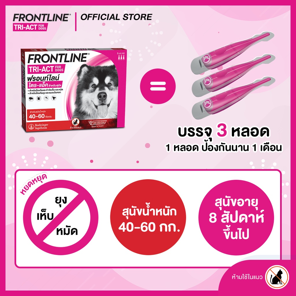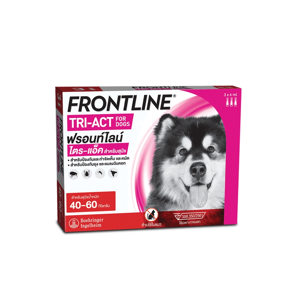 [ใหม่] FRONTLINE TRI-ACT Size XL สำหรับสุนัข 40-60 kg หยดตรงจุด หยุด ยุง เห็บ หมัด ฟรอนท์ไลน์ ไตร-แอ็ค (ล็อตยาว)