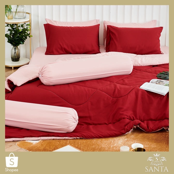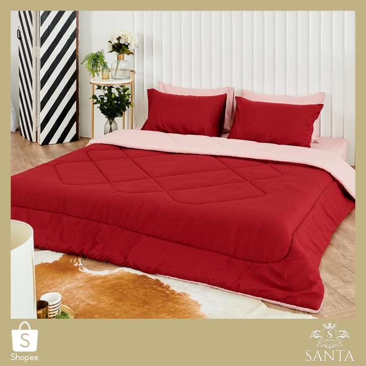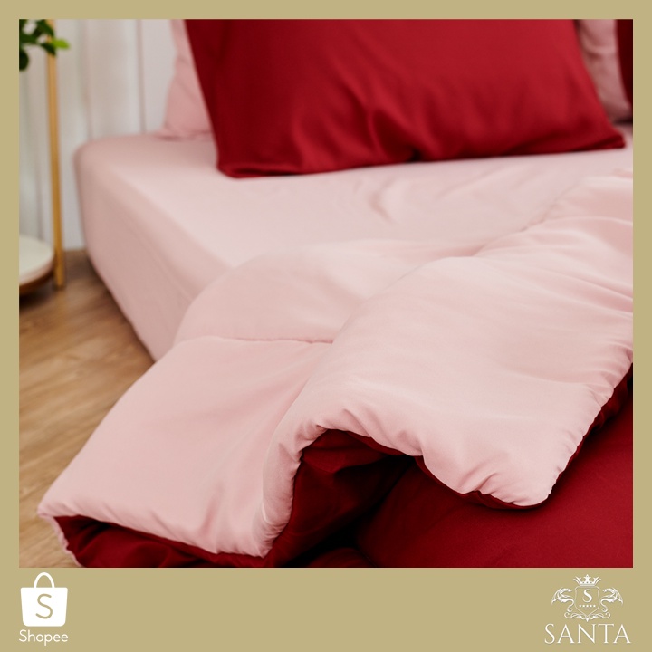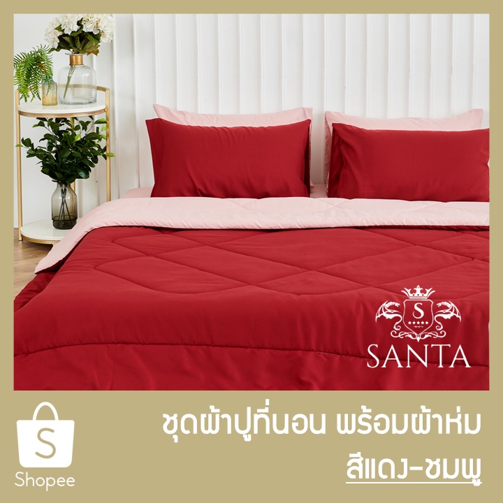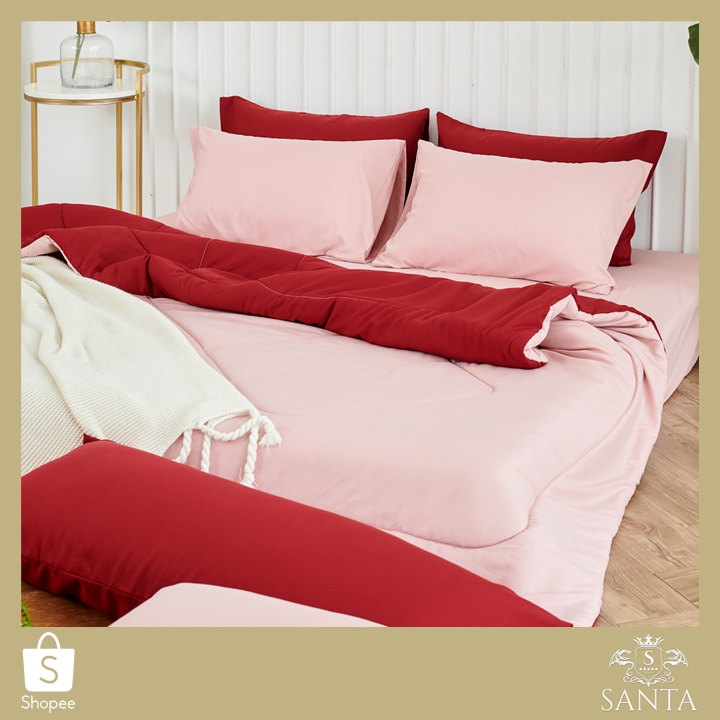 SANTA ชุด ผ้าปูที่นอน ผ้าห่ม ผ้านวม สีแดง สีชมพู