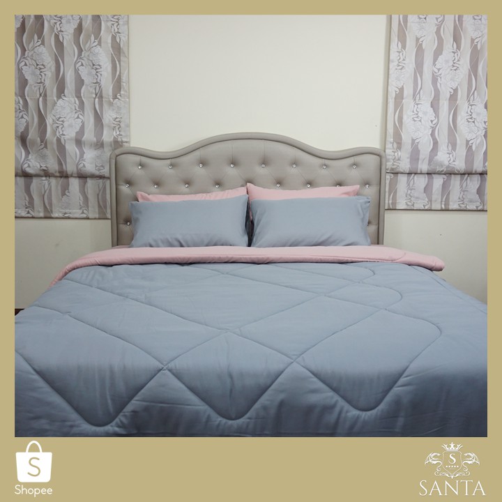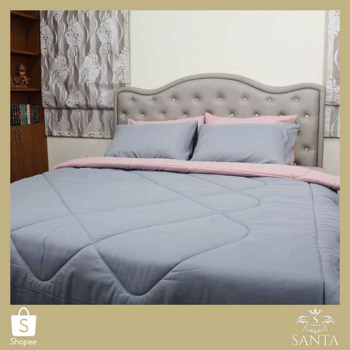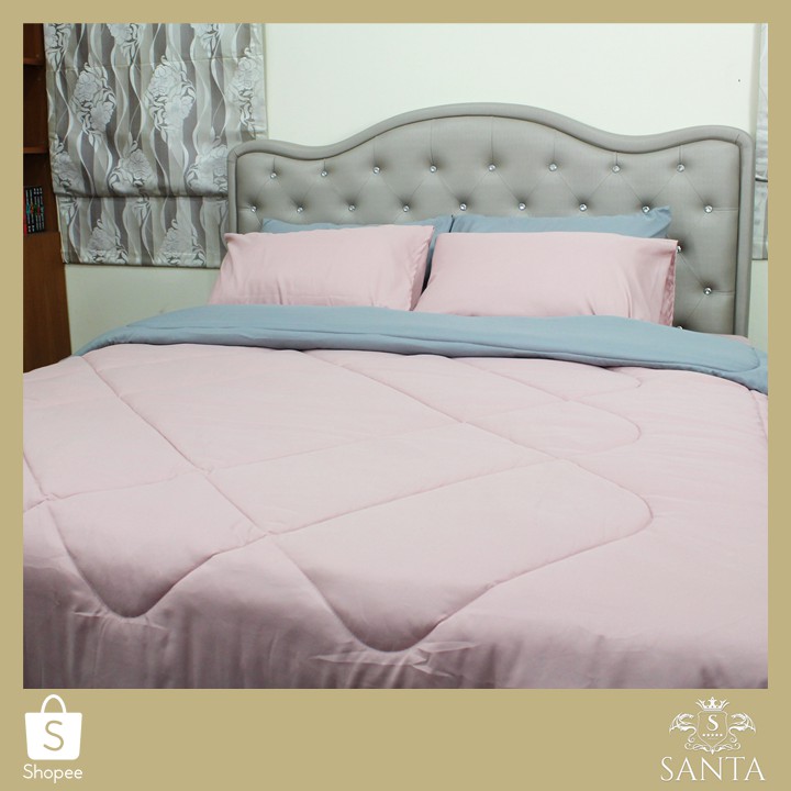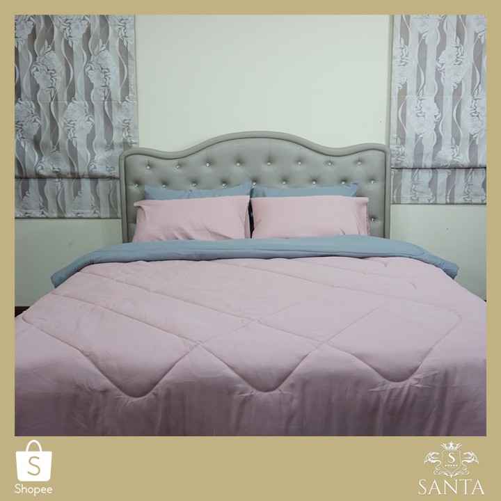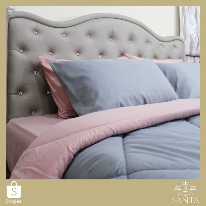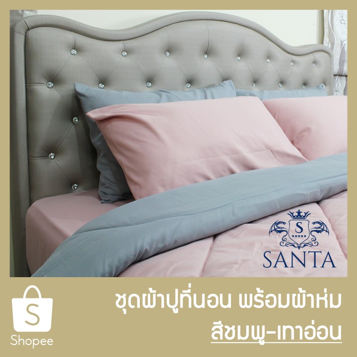 SANTA ชุด ผ้าปูที่นอน ผ้าห่ม ผ้านวม สีชมพู สีเทาอ่อน