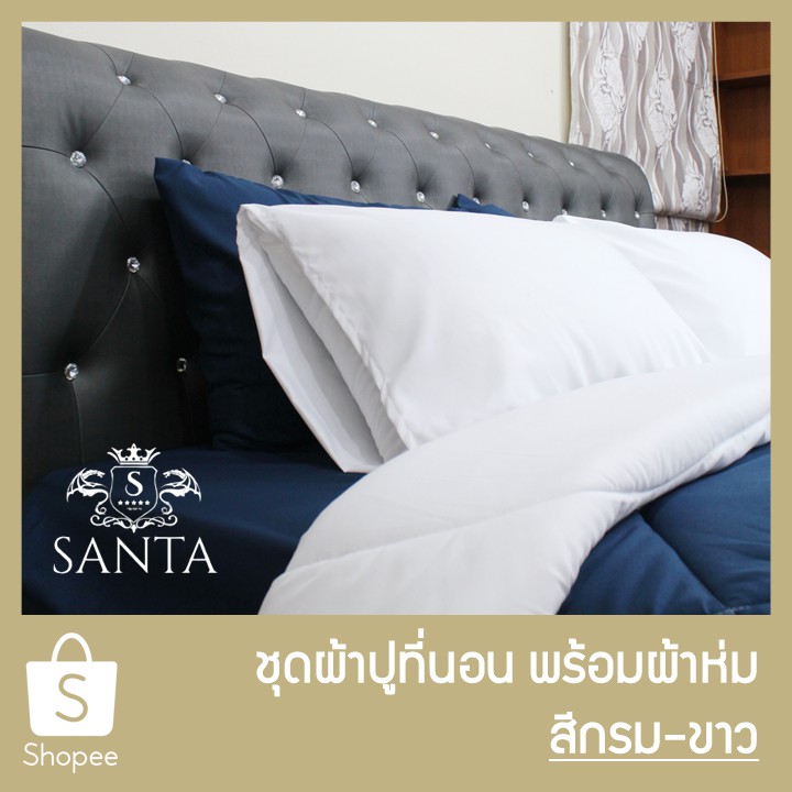 SANTA ชุด ผ้าปูที่นอน ผ้าห่ม ผ้านวม สีกรม สีขาว