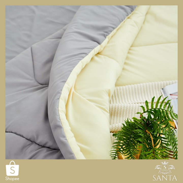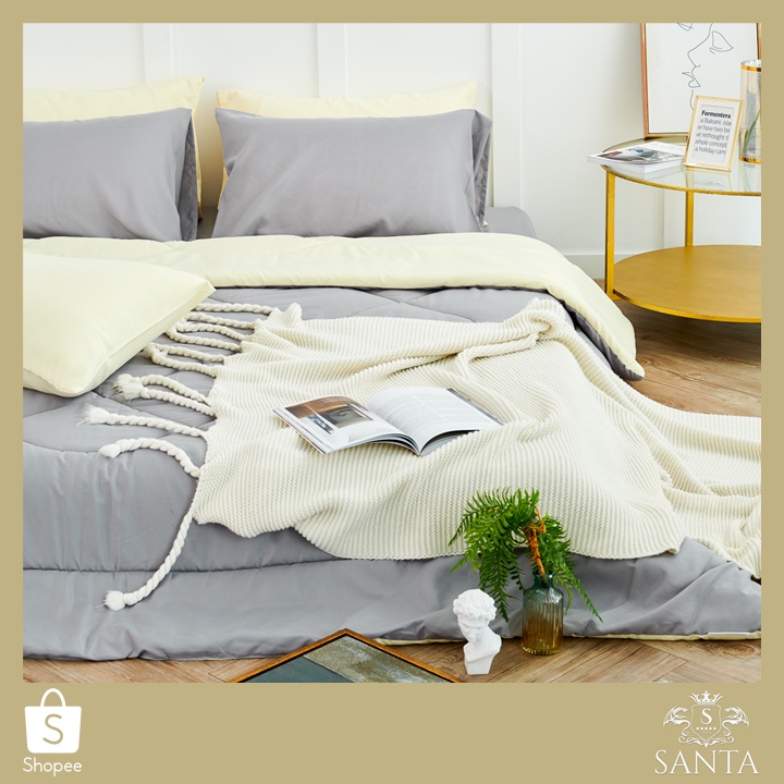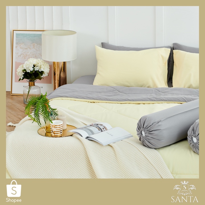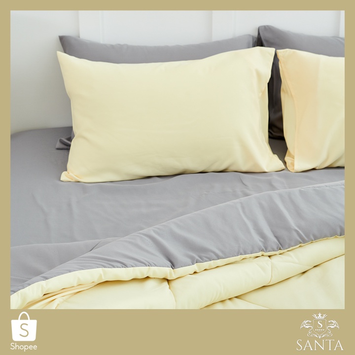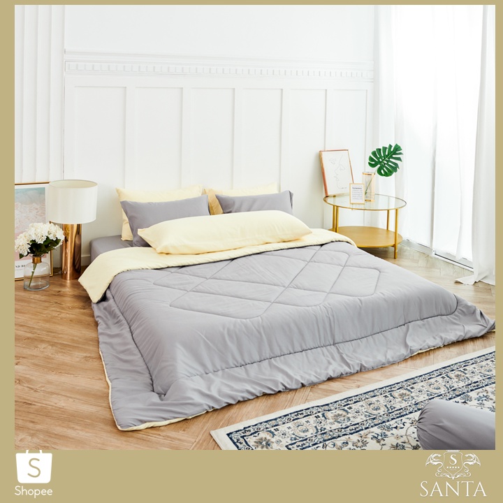 SANTA ชุด ผ้าปูที่นอน ผ้าห่ม ผ้านวม สีเหลือง สีเทาอ่อน