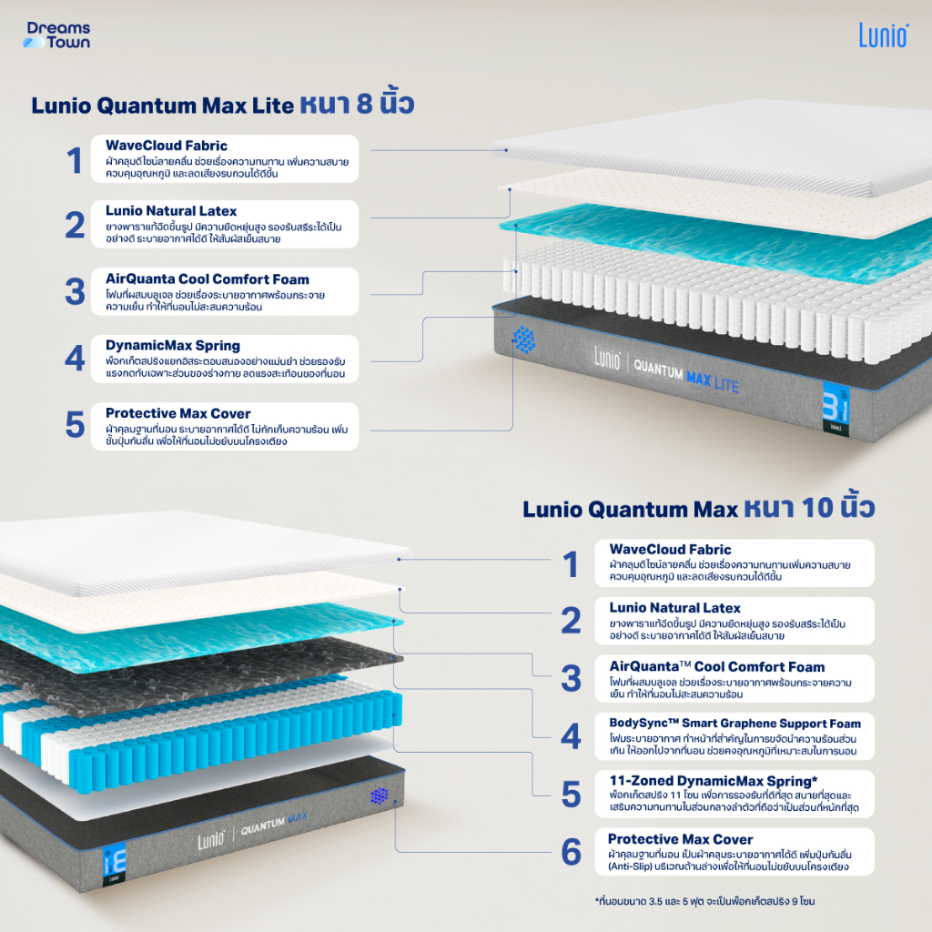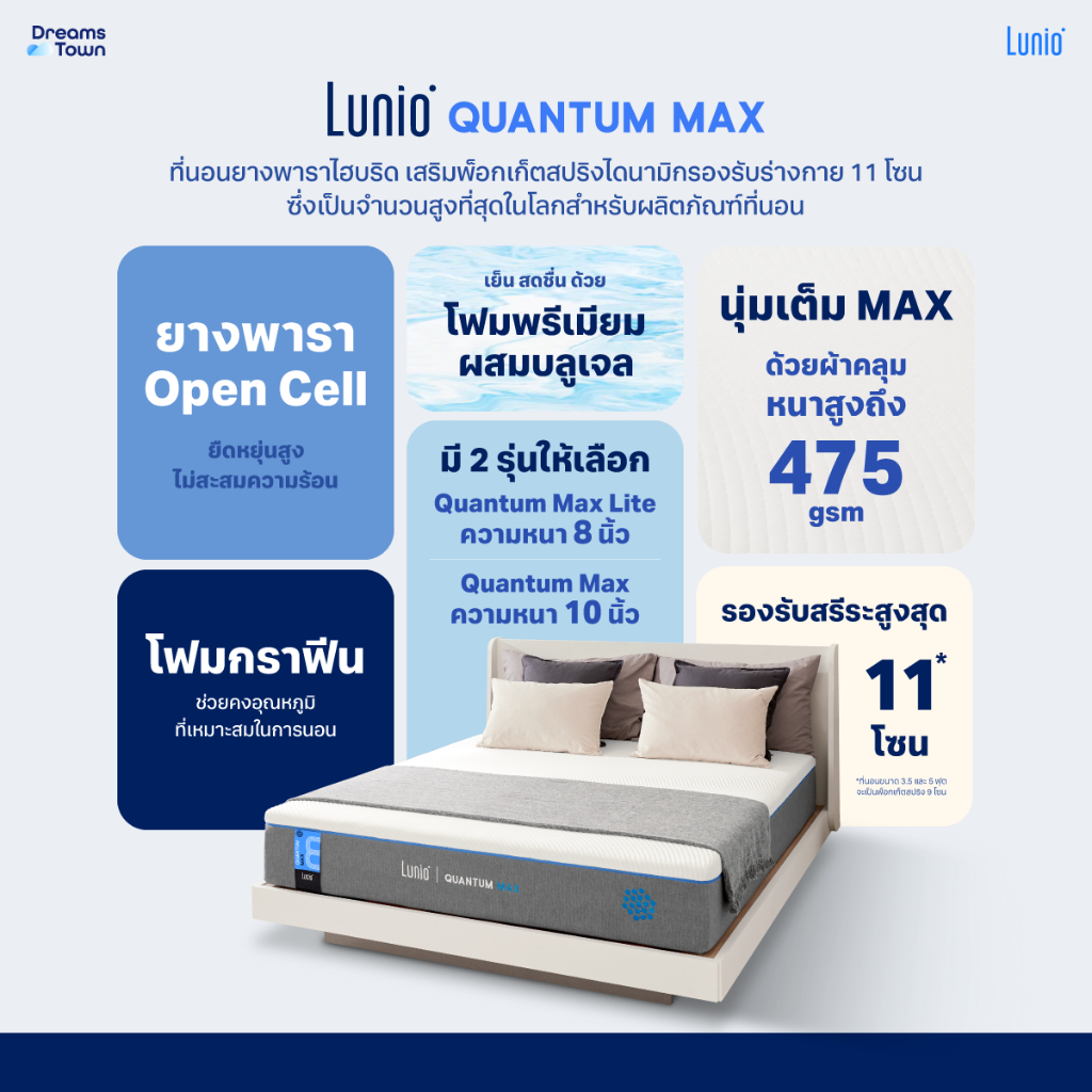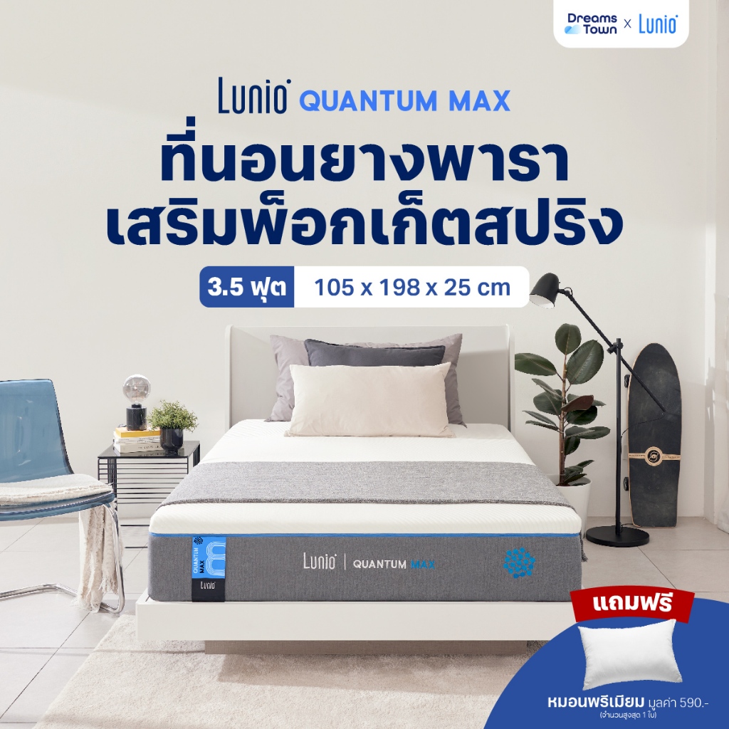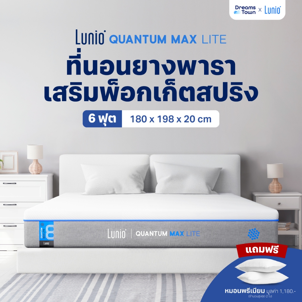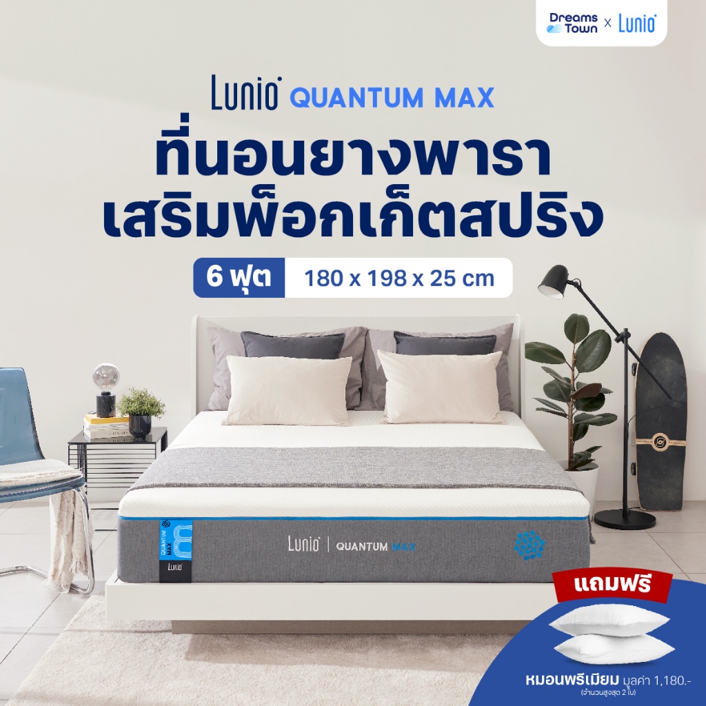 Lunio ที่นอนยางพาราอัลตร้าไฮบริด เสริมพ็อกเก็ตสปริง ระบายความร้อนอย่างดี แน่น เด้ง ไม่ยวบ รุ่น Quantum Max