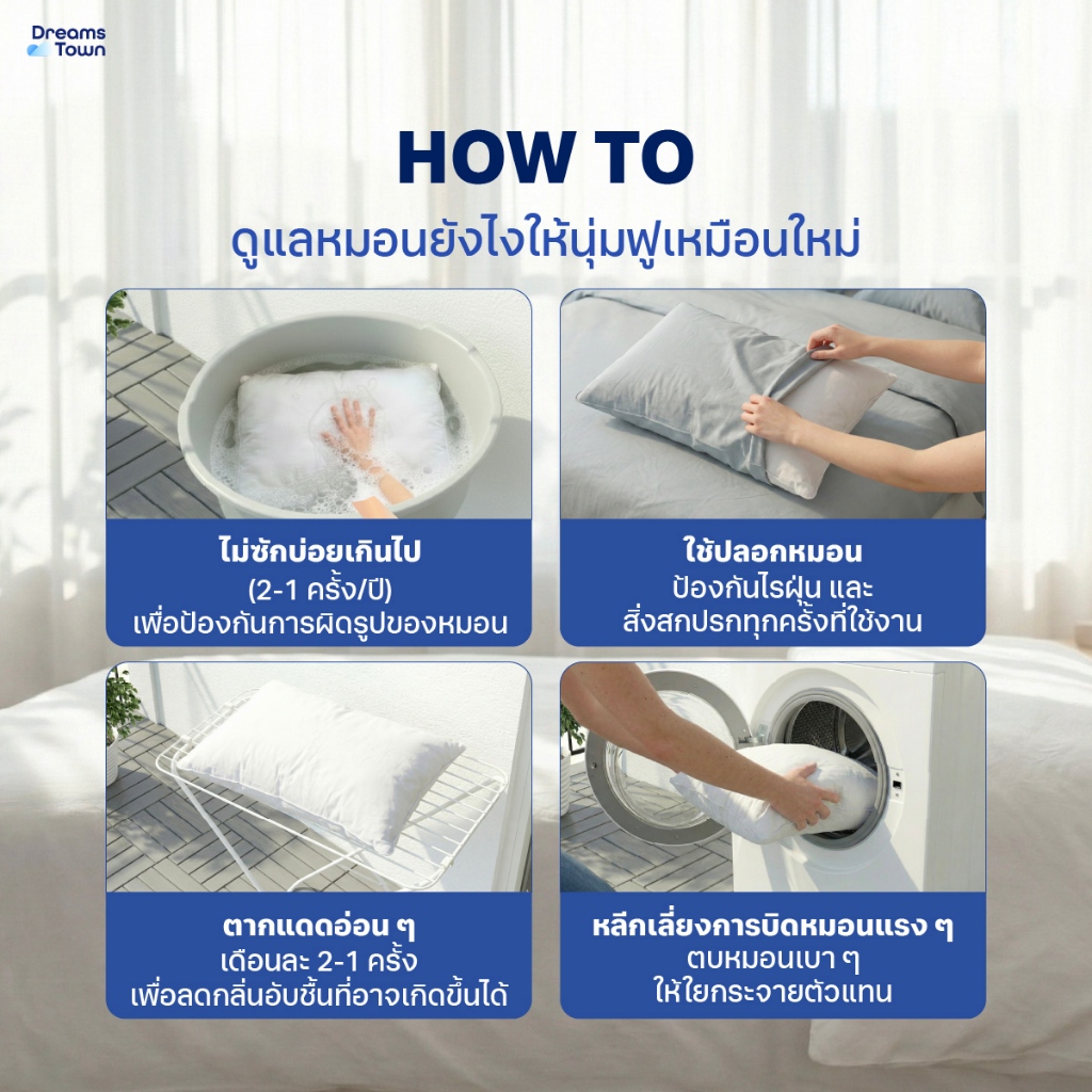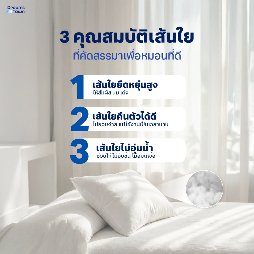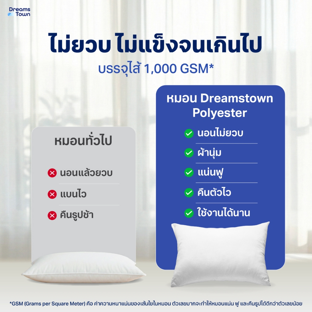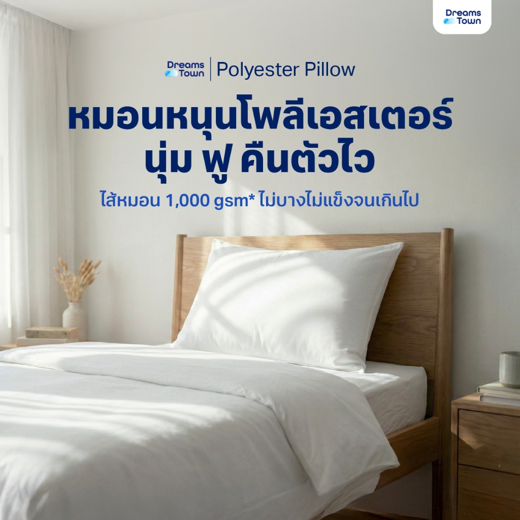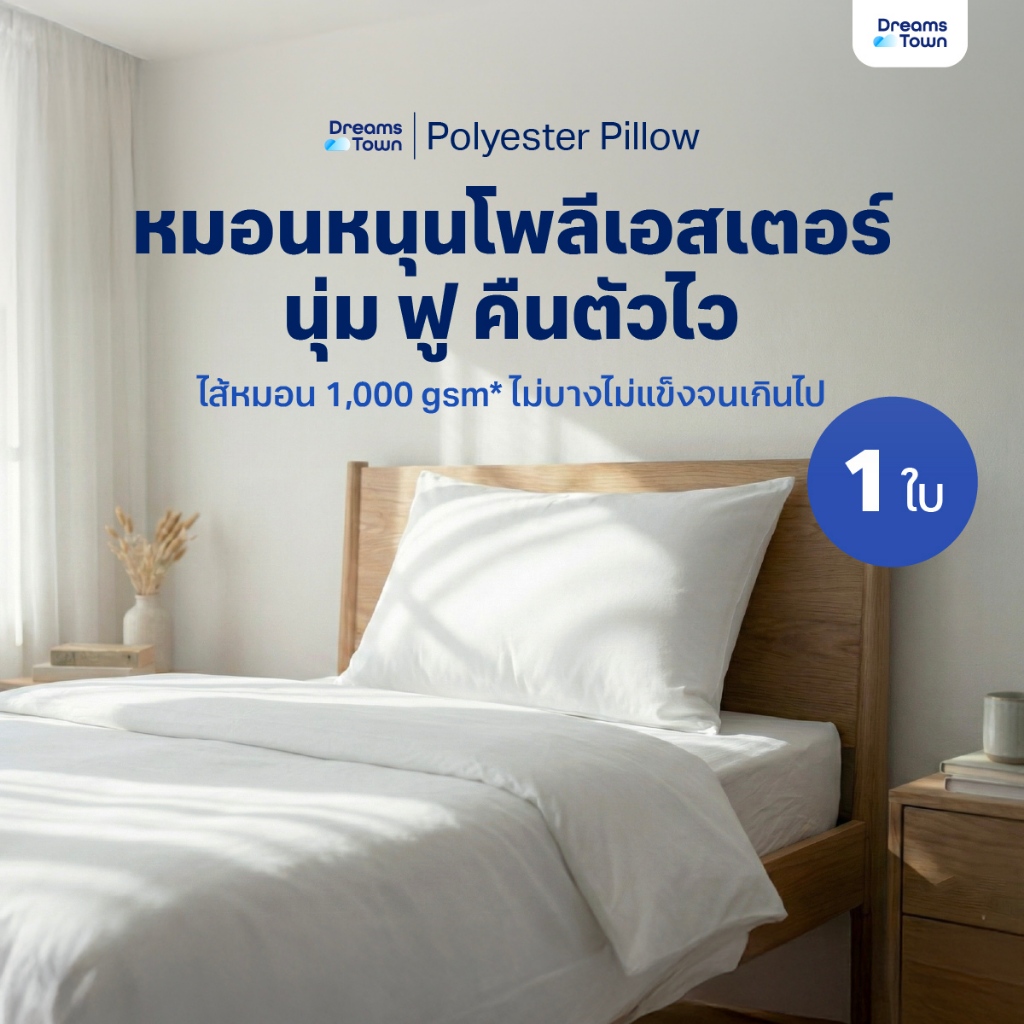 Dreamstown หมอน หมอนหนุน ใยฟู นุ่มสบาย เกรดคุณภาพ ทำจากโพลีเอสเตอร์ Polyester Pillow