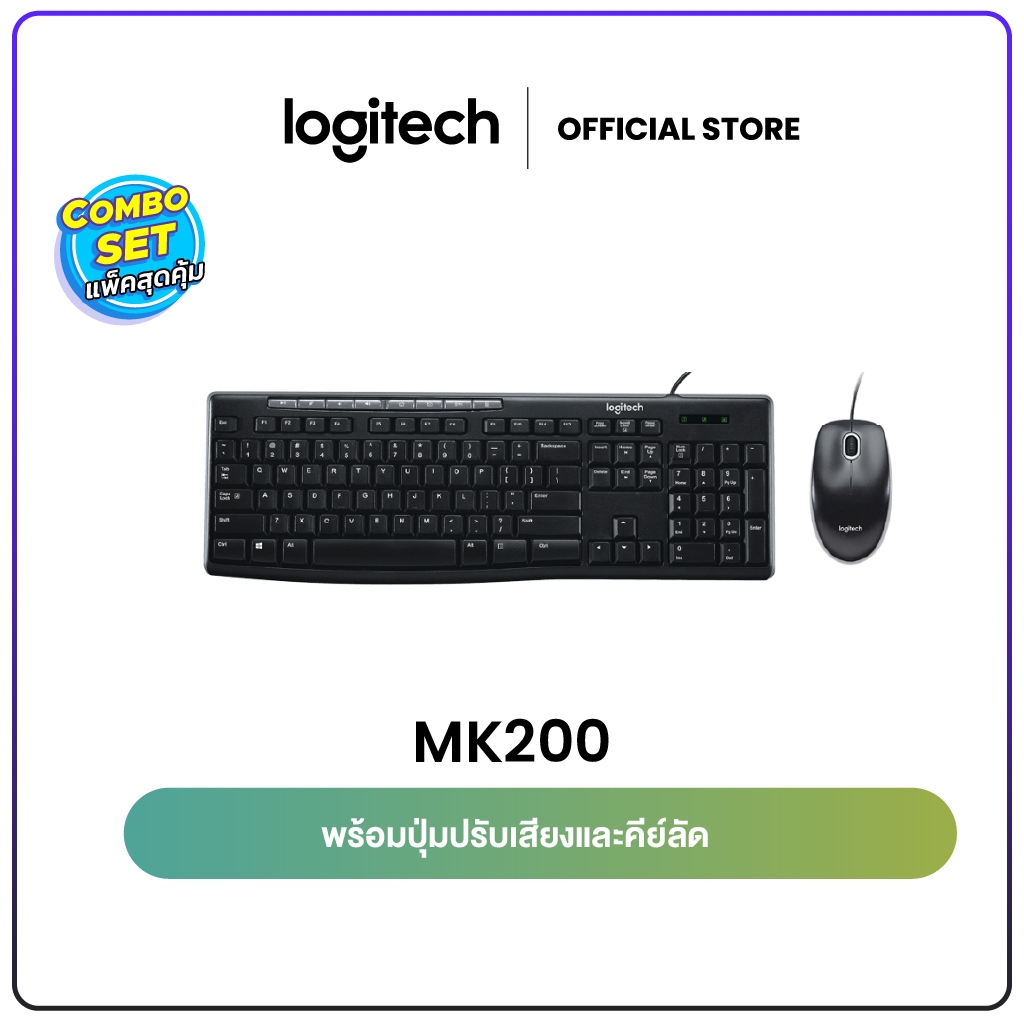 Logitech MK200 Media Desktop (เมาส์ คีย์บอร์ด พร้อมปุ่มคีย์ลัด 8 ปุ่ม) (คีย์แคป TH/EN)