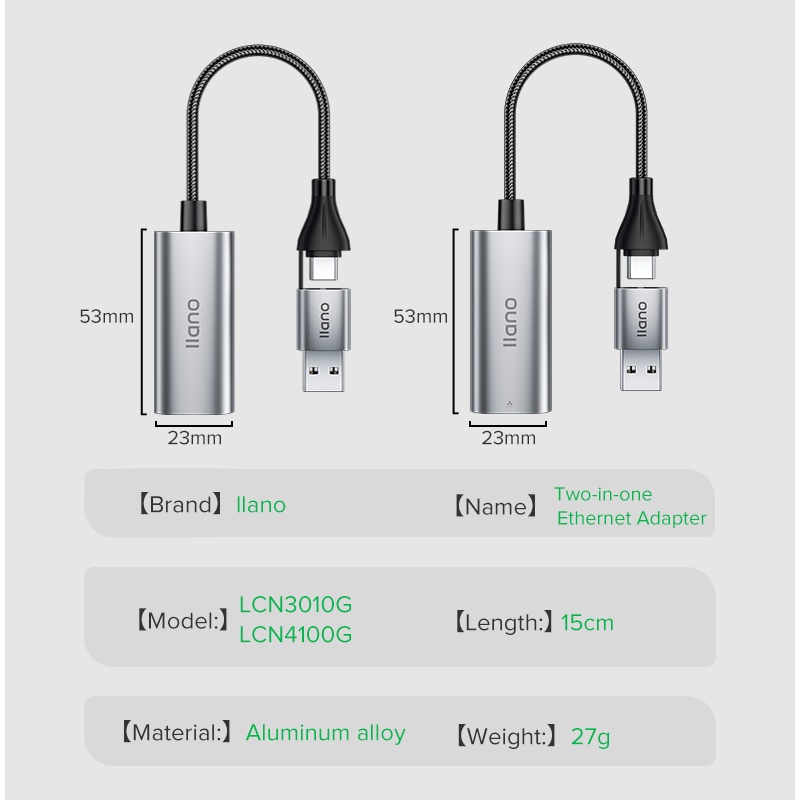 Llano อะแดปเตอร์การ์ดเครือข่าย USB เป็นอีเธอร์เน็ต RJ45 USB 3.0 2.0 100 1000 2500Mbps เป็น RJ45 Lan