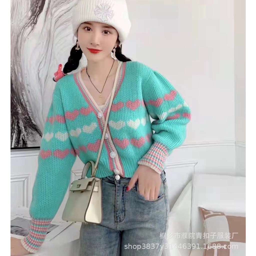 เสื้อกันหนาวไหมพรม ลายหัวใจน่ารักๆ เสื้อคลุมแขนยาว สีสันน่ารักมาก ผ้านิ่ม ใส่สบายมาก เสื้อคลุมแฟชั่น เสื้อผ้าแฟชั่น พร้อ