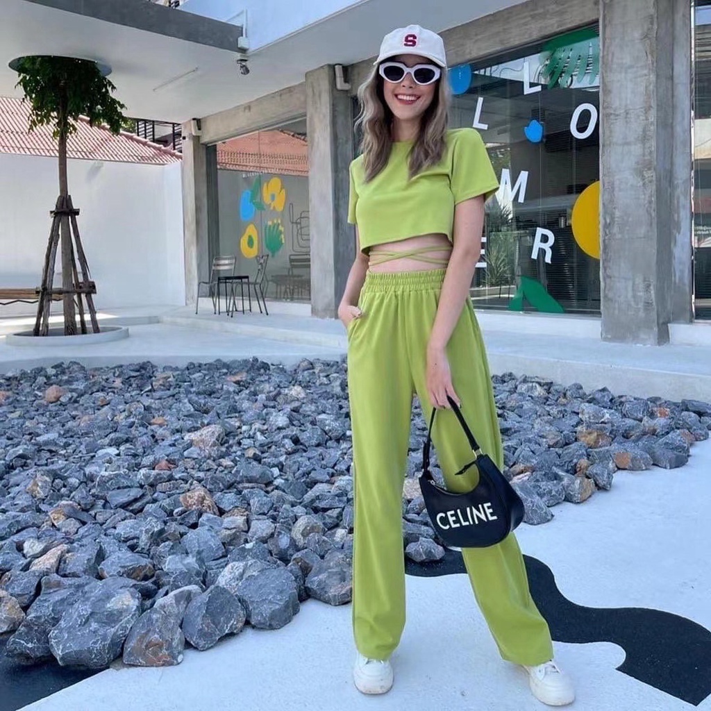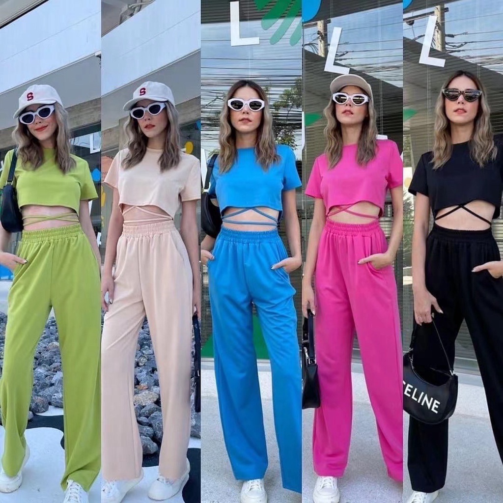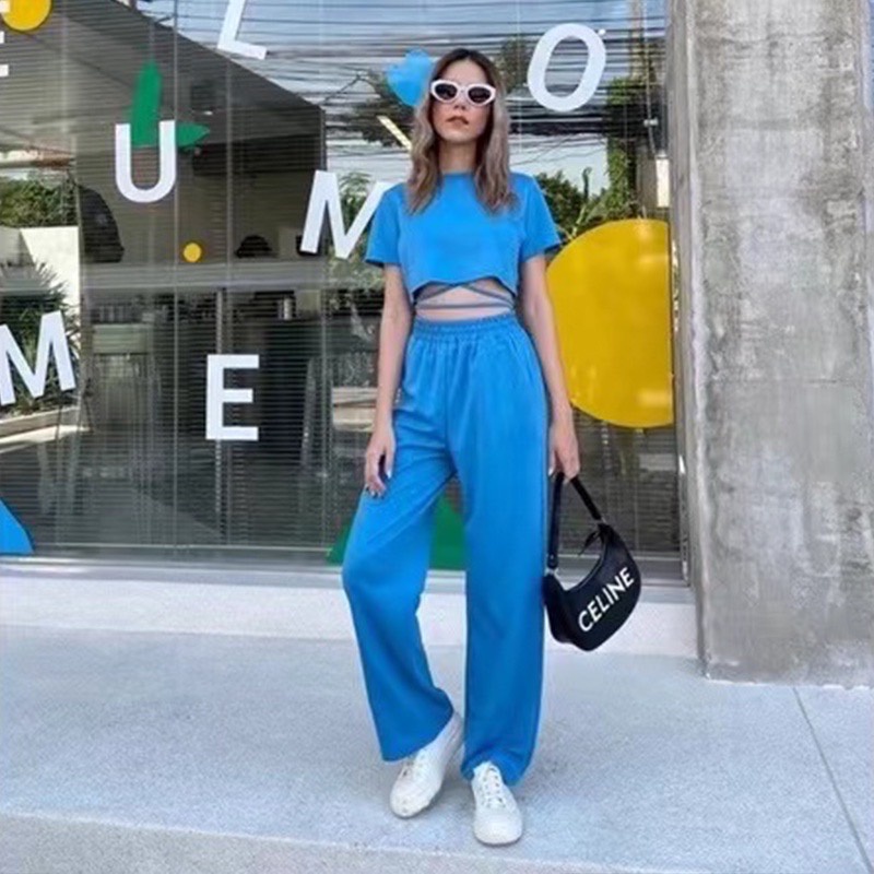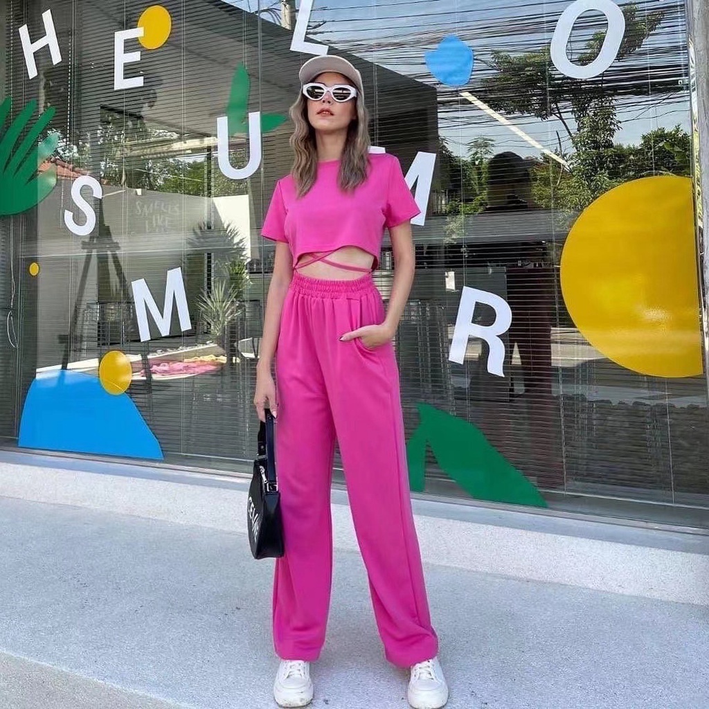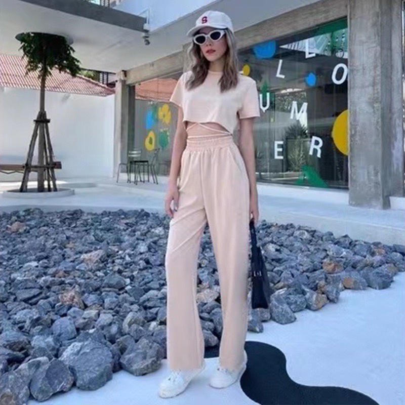 ZHENG ชุดเซ็ตแฟชั่น 2 ชิ้น เสื้อยืดแขนสั้น+กางเกงขากว้างลำลอง ทรงสวย เนื้อผ้าใส่สบาย พร้อมส่ง