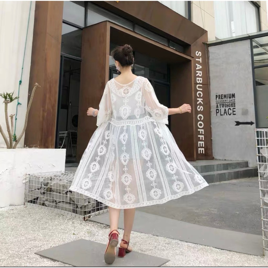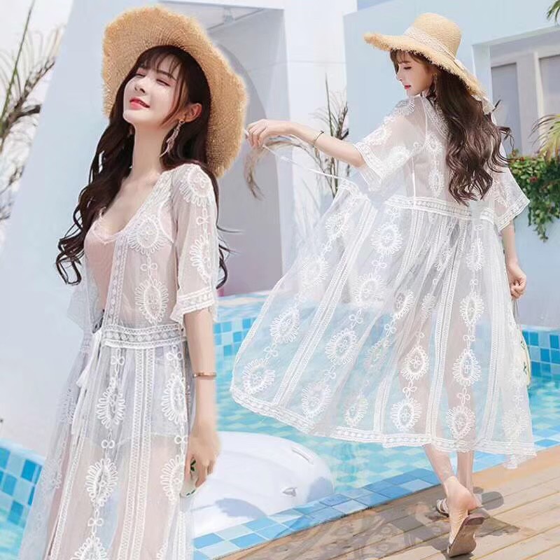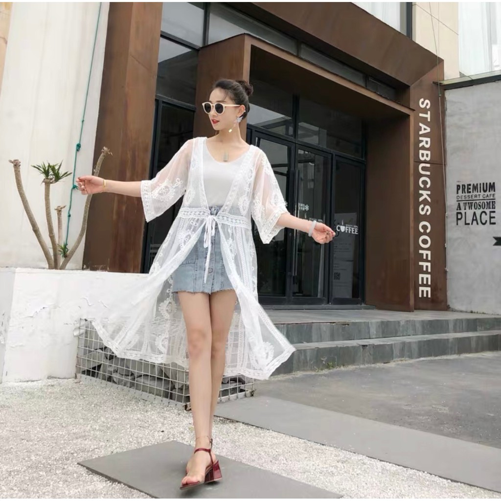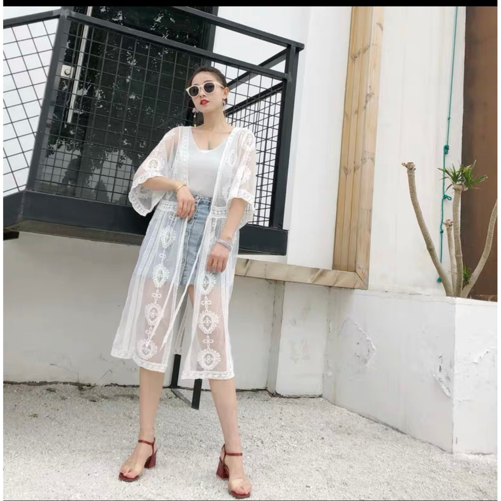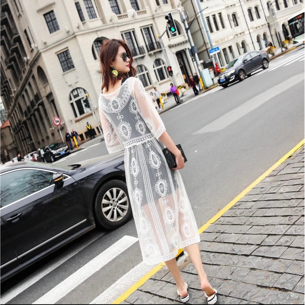 🌻🌼เสื้อคลุมซีทรู ทรงยาว แขนสั้นสามส่วน สไตล์เกาหลี เสื้อคลุมสวยๆใส่เที่ยวทะเล ใส่ไปงานก็ได้ ฟรีไซส์ ใส่ได้ทุกโอกาศ🌼