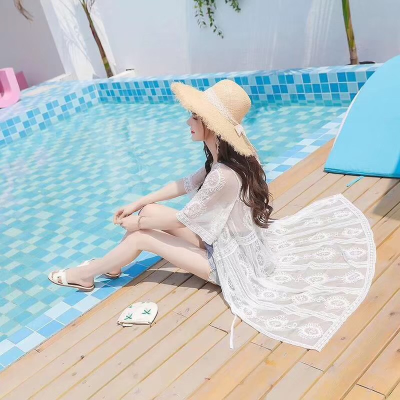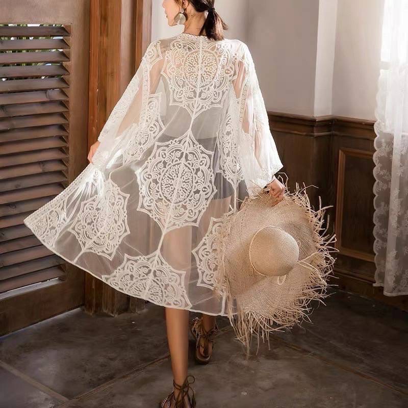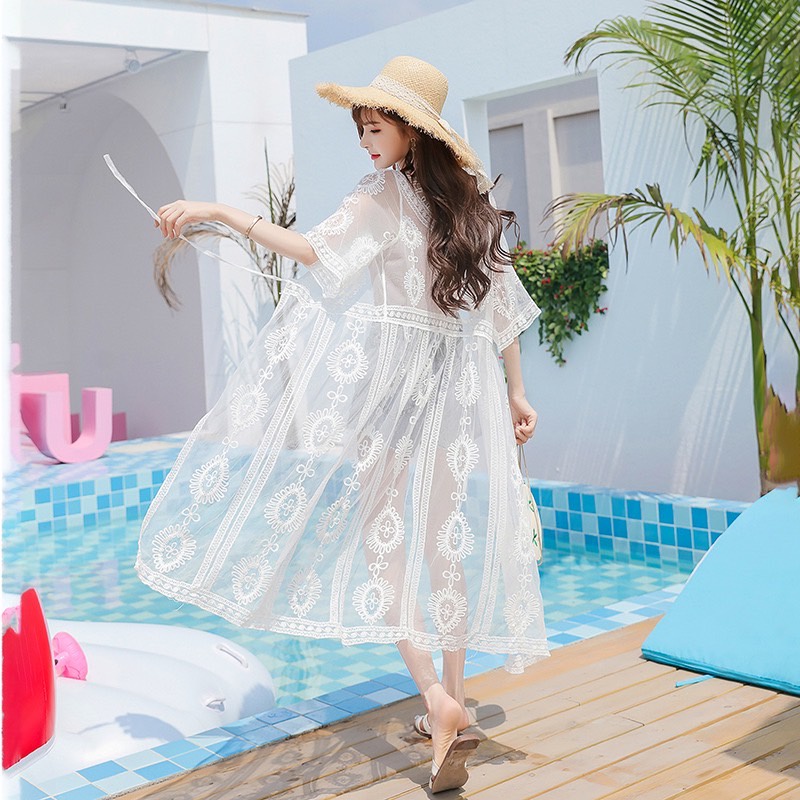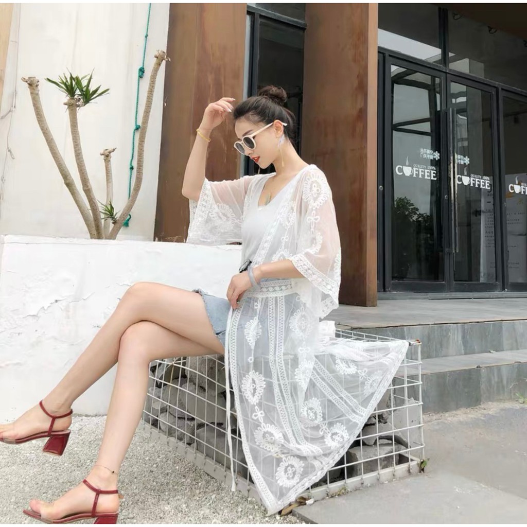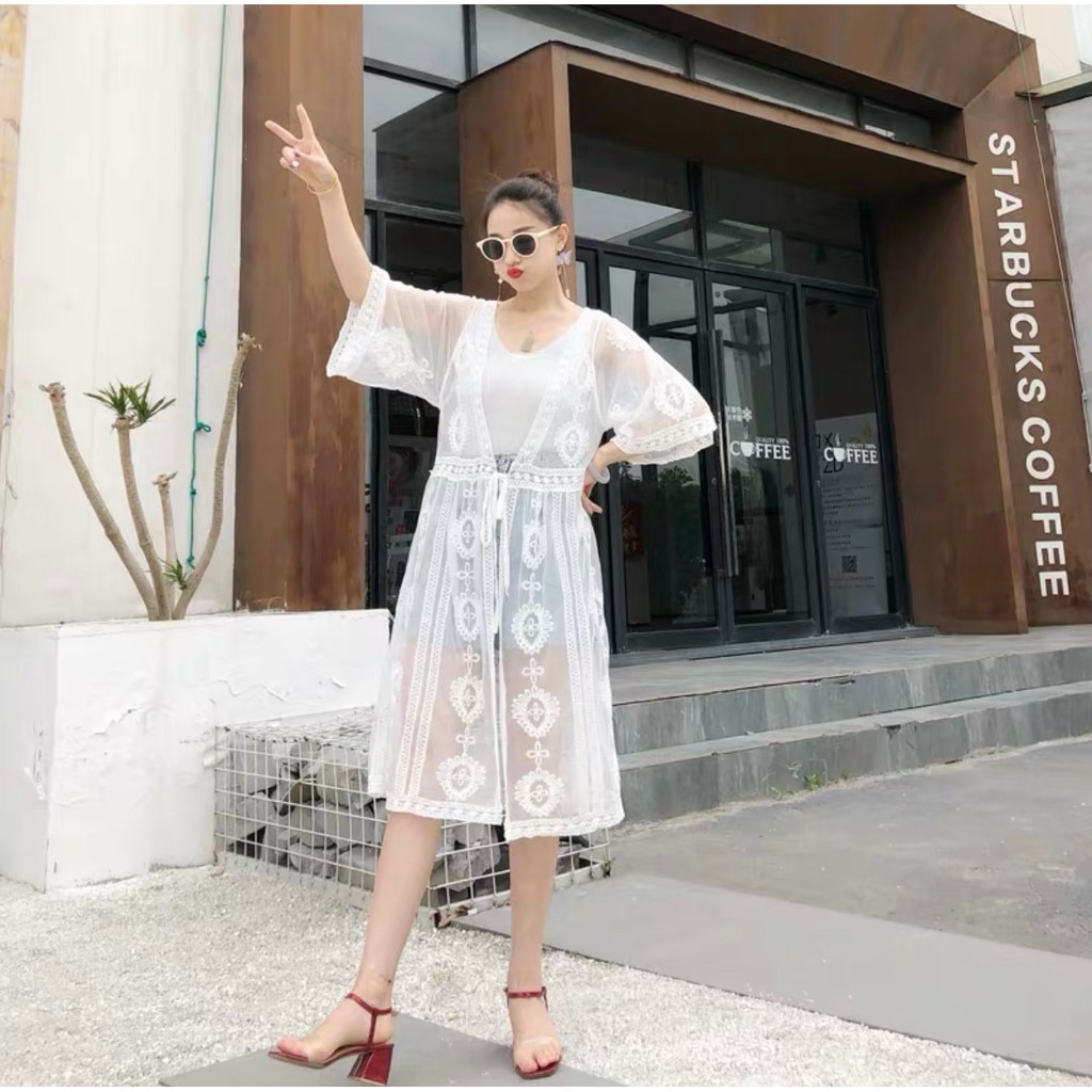🌻🌼เสื้อคลุมซีทรู ทรงยาว แขนสั้นสามส่วน สไตล์เกาหลี เสื้อคลุมสวยๆใส่เที่ยวทะเล ใส่ไปงานก็ได้ ฟรีไซส์ ใส่ได้ทุกโอกาศ🌼