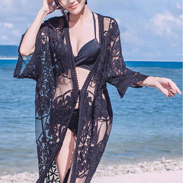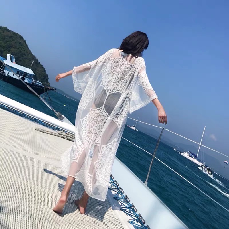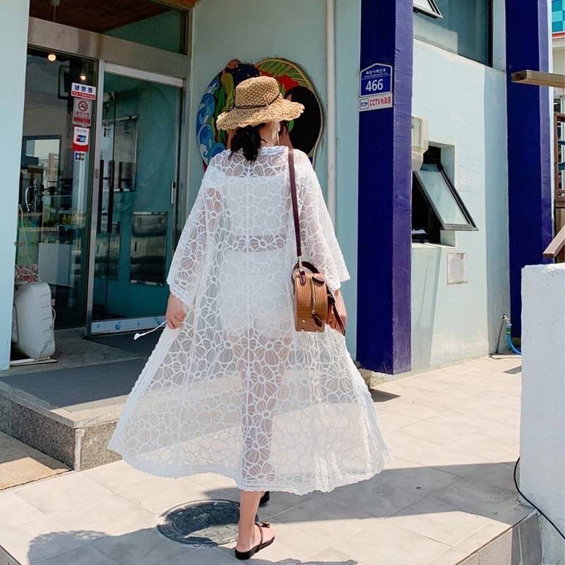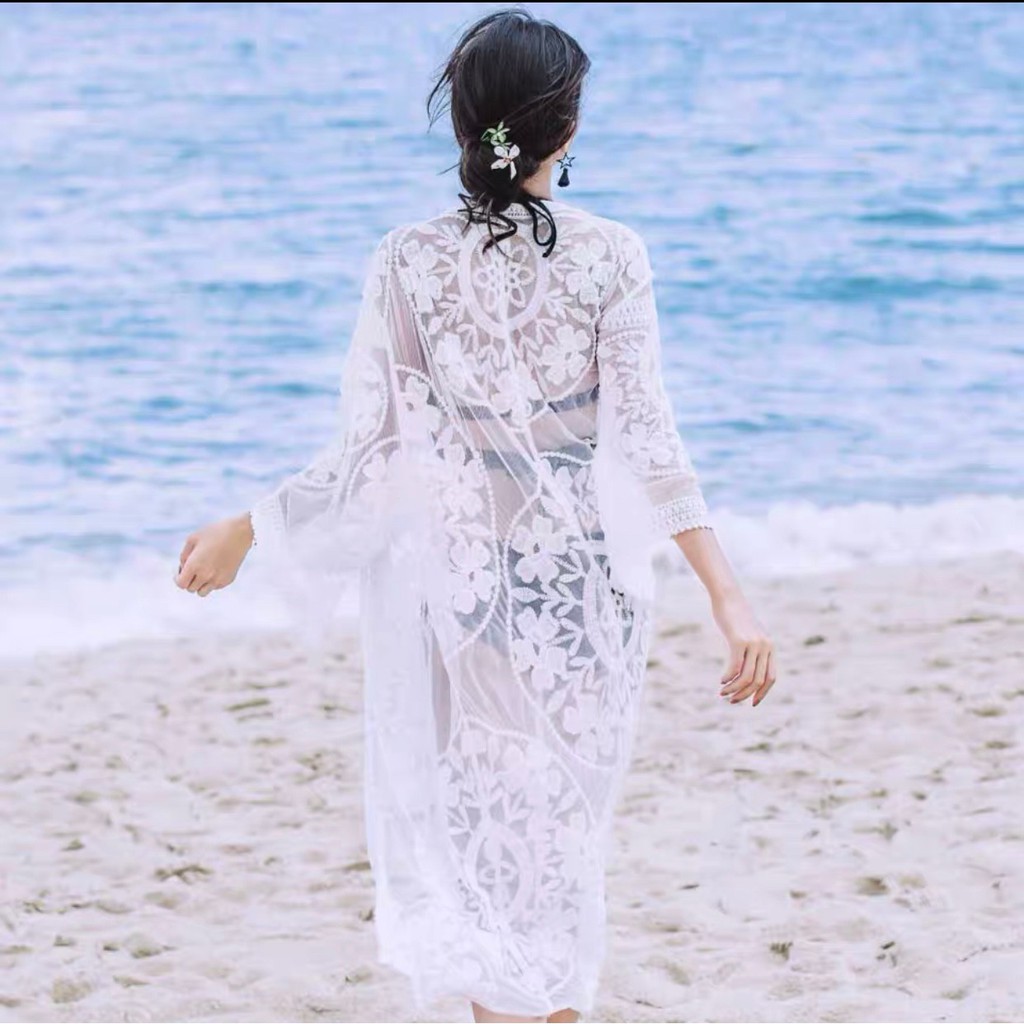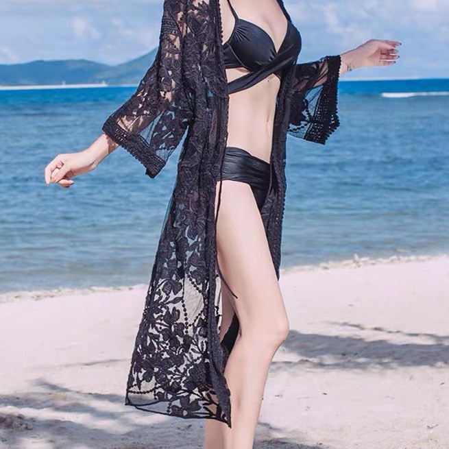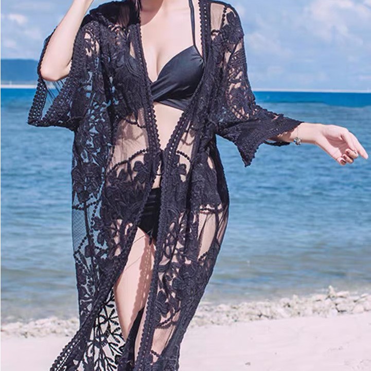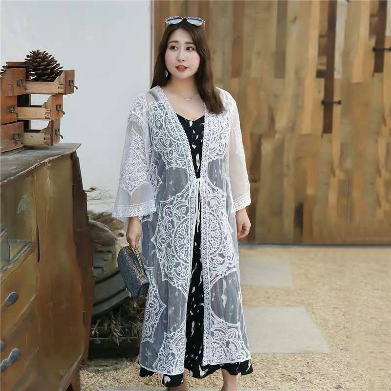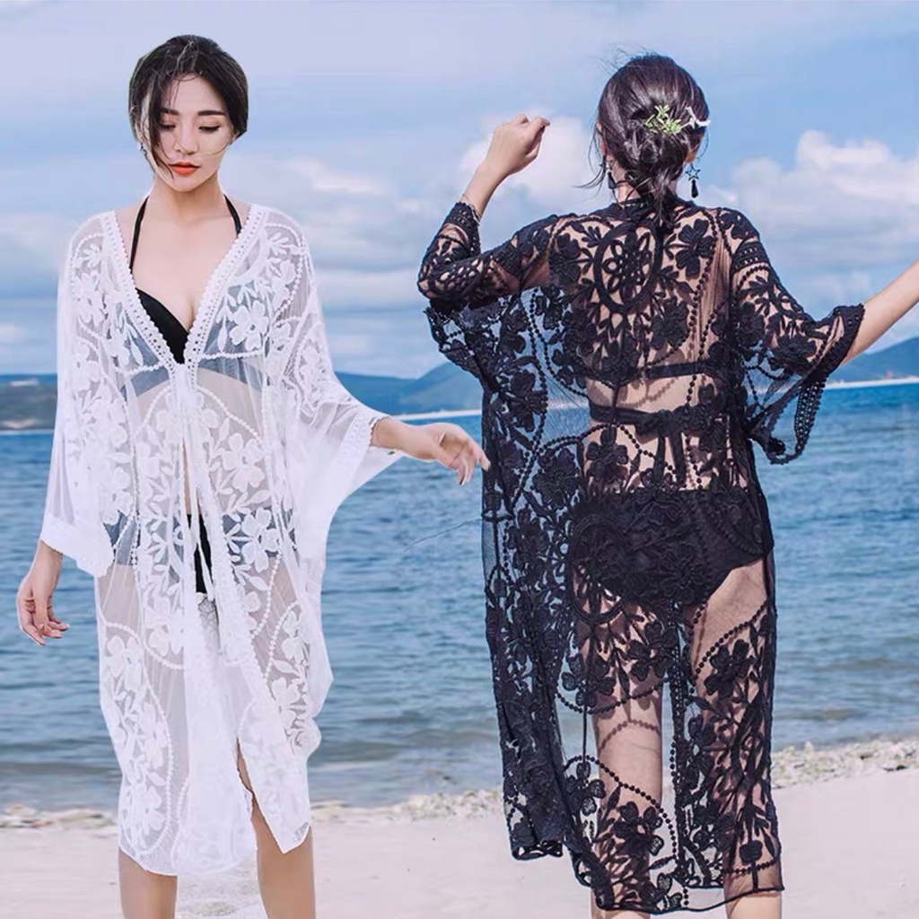 เสื้อคลุมซีทรู ทรงยาว แขนสั้น สไตล์เกาหลี ใส่ได้หลายโอกาศ มีสีดำและขาว สินค้าพร้อมส่ง