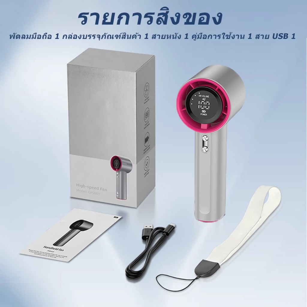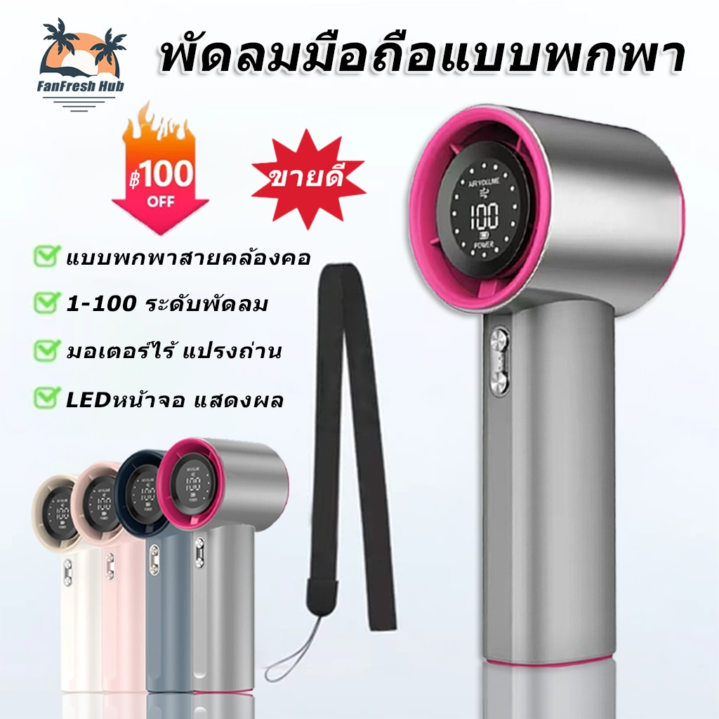 พัดลมมือถือ พัดลมพกพา ปรับความเร็วได้ 100 ระดับ ชาร์จใหม่ได้พร้อมจอแสดงผลดิจิตอล แบ ตฯใหญ่4000mAh