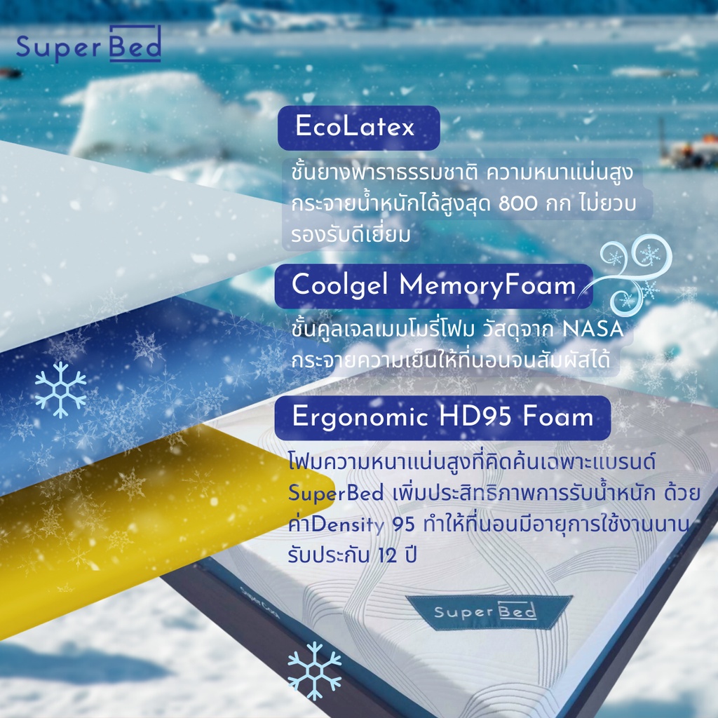 SuperBed❄SuperCool จัดส่งทั่วประเทศ ที่นอนยางพาราธรรมชาติผสานคูลเจลเมมโมรี่โฟมนวัตกรรมจากNASA