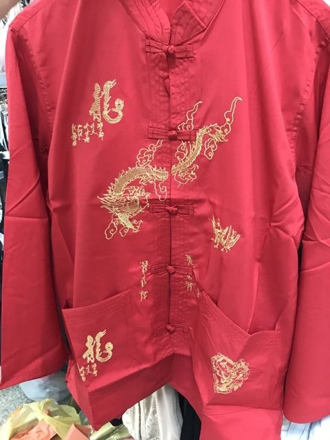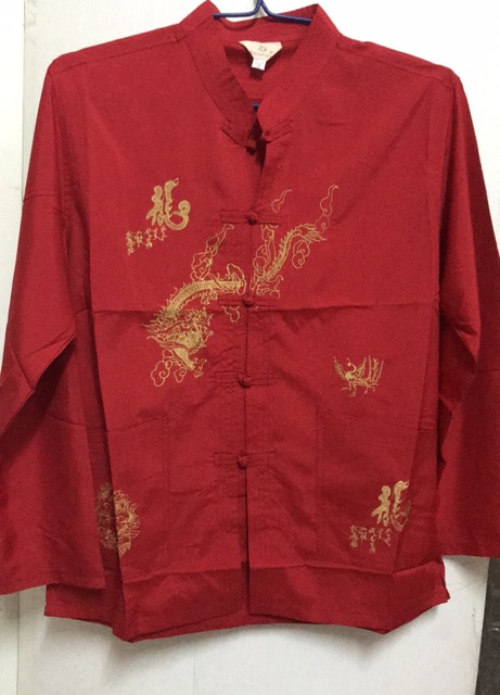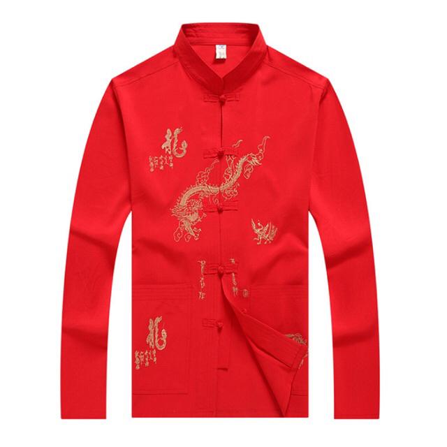 เสื้อคอจีนชาย(แขนยาว)ปักมังกร1ตัวสีแดง(LONG)