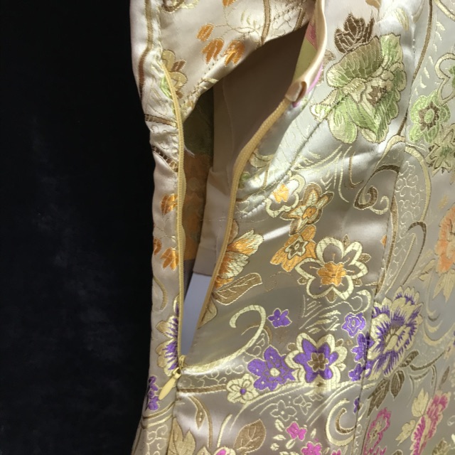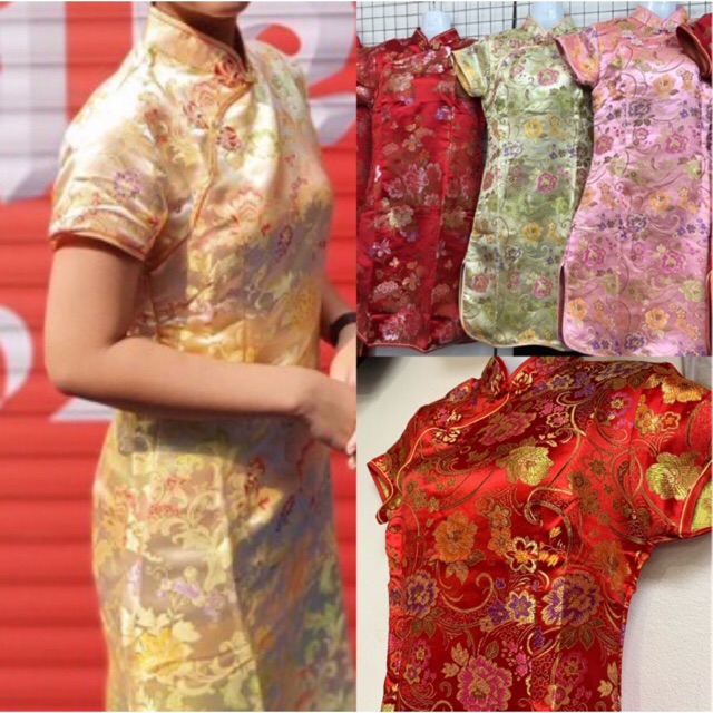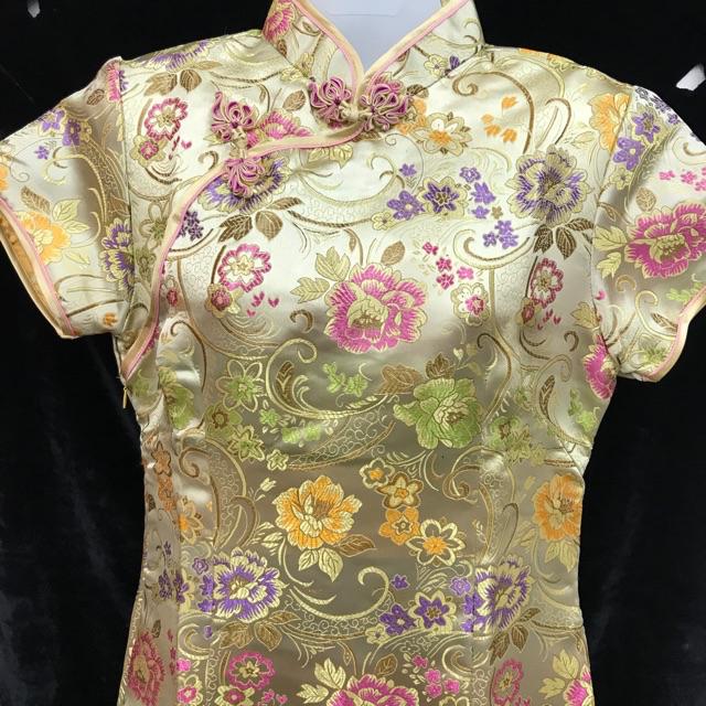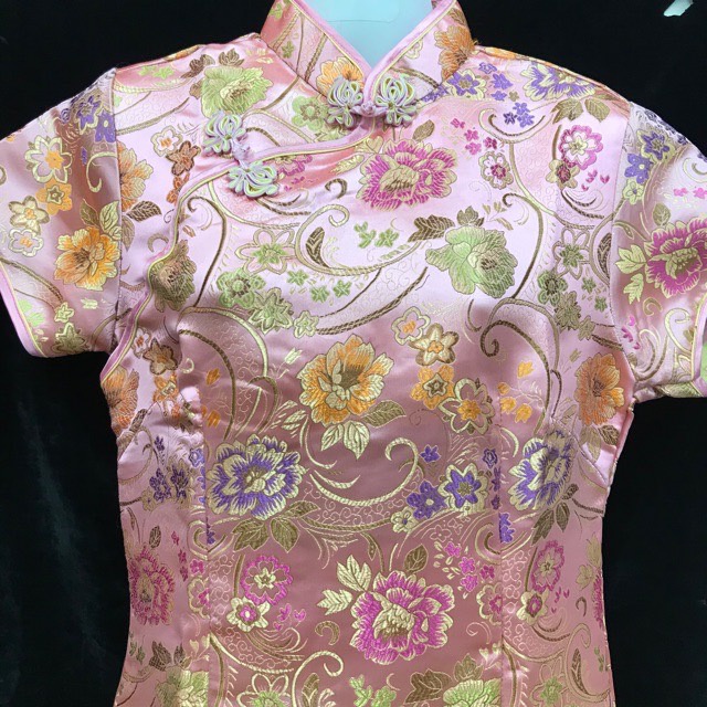 ชุดแซกก ี่เพ้า(สั้น) ลายดอกโบตั๋น ลายอักษรจีนดอกไม้สีแดง #พร้อมส่ง