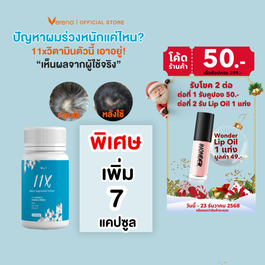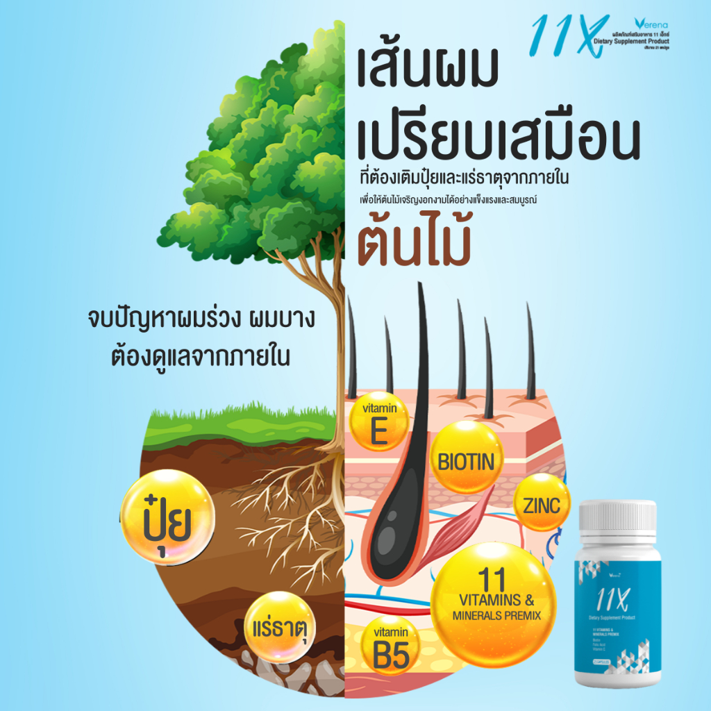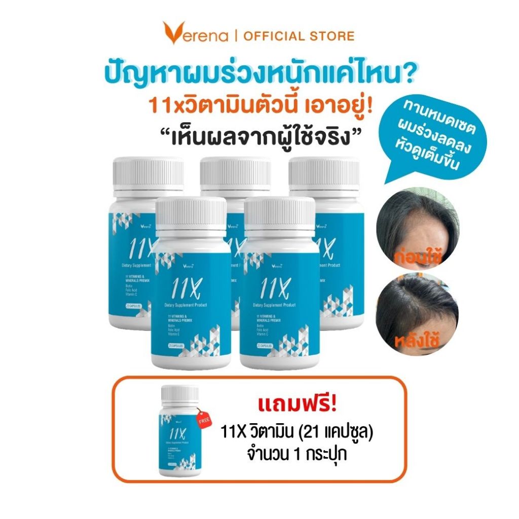 วิตามินบำรุงผม 11X |ผมร่วง ผมบาง | มีไบโอติน + ซิงค์ เห็นผลใน 30 วัน Verena 11X (21+7 แคปซูล)