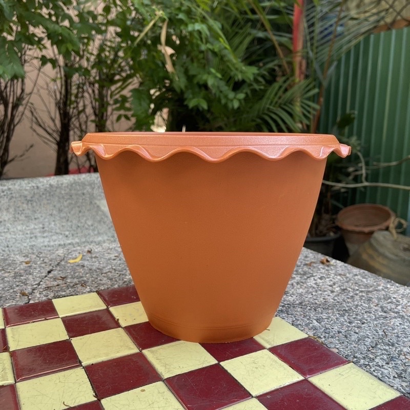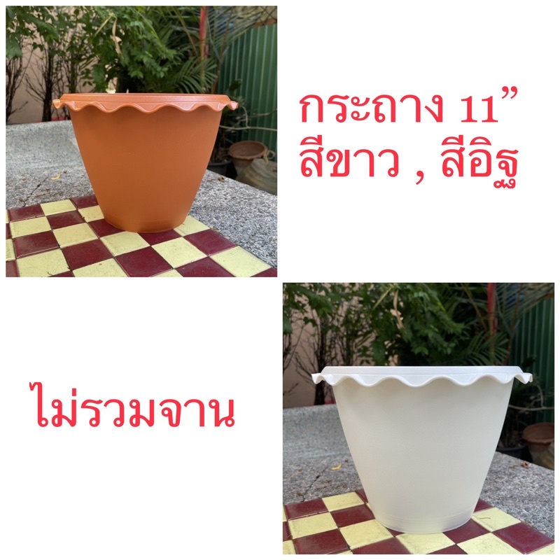 กระถาง11 นิ้ว สีขาวและสีอิฐหนา ทนทานไม่รวมจาน