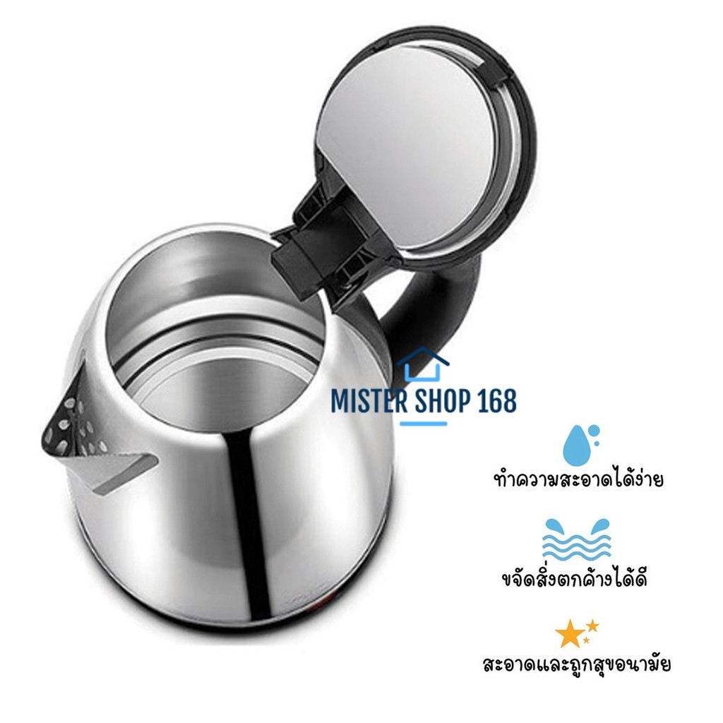 (ลูกค้าใหม่ 1 บาท) กาน้ำร้อนไฟฟ้า ความจุ 2 ลิตร กาสแตนเลส
