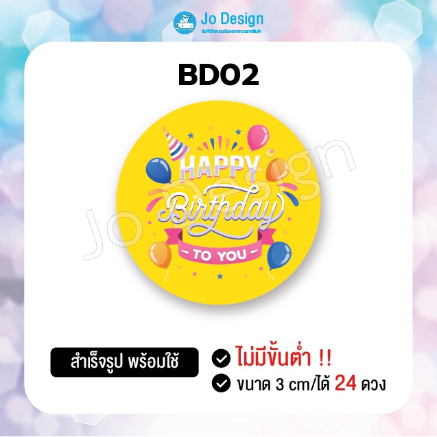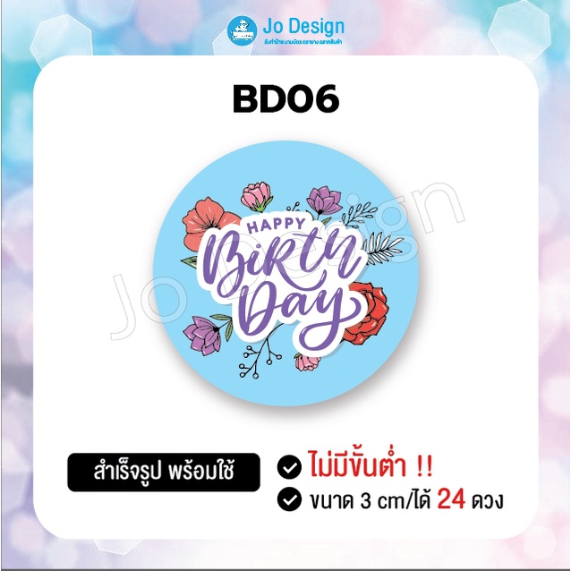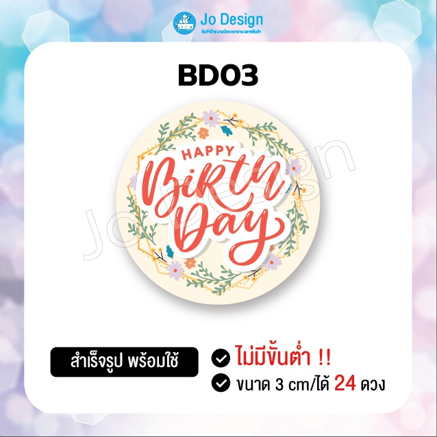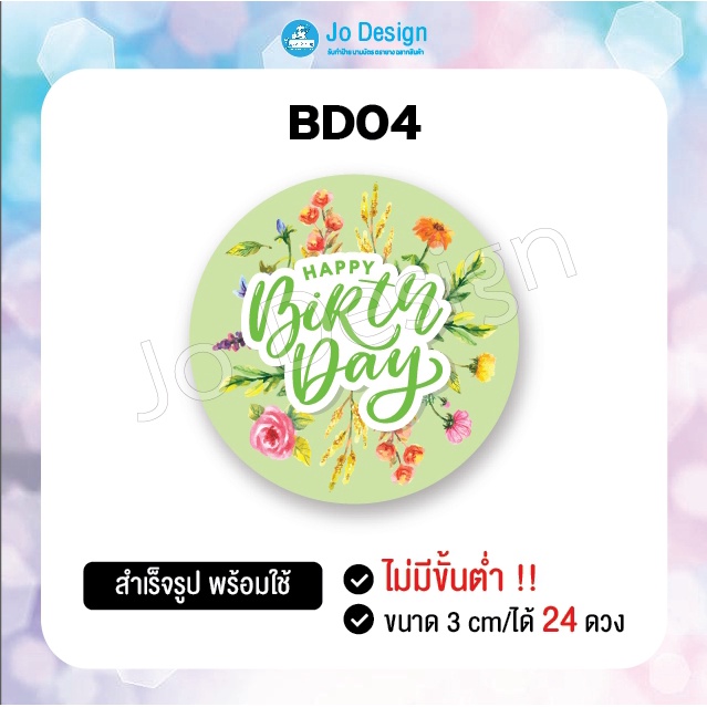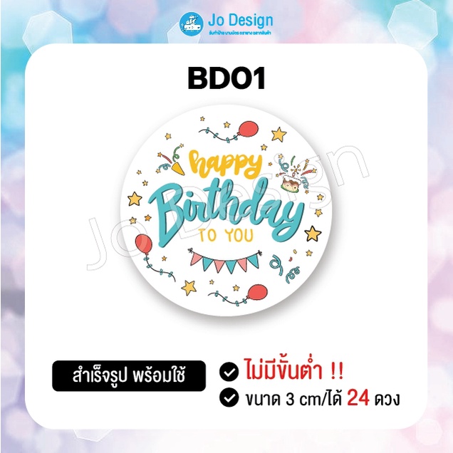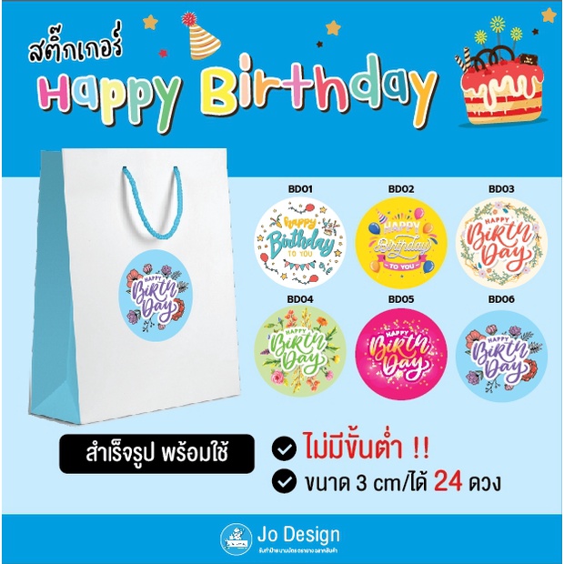 พร้อมส่ง สติ๊กเกอร์ Happy Birthday ลายน่ารัก ติดถุงขนมหรือของฝาก ไดคัทเรียบร้อย ลอกแล้วติดได้เลย 1 แผ่นมี 24 ดวง #Sticke
