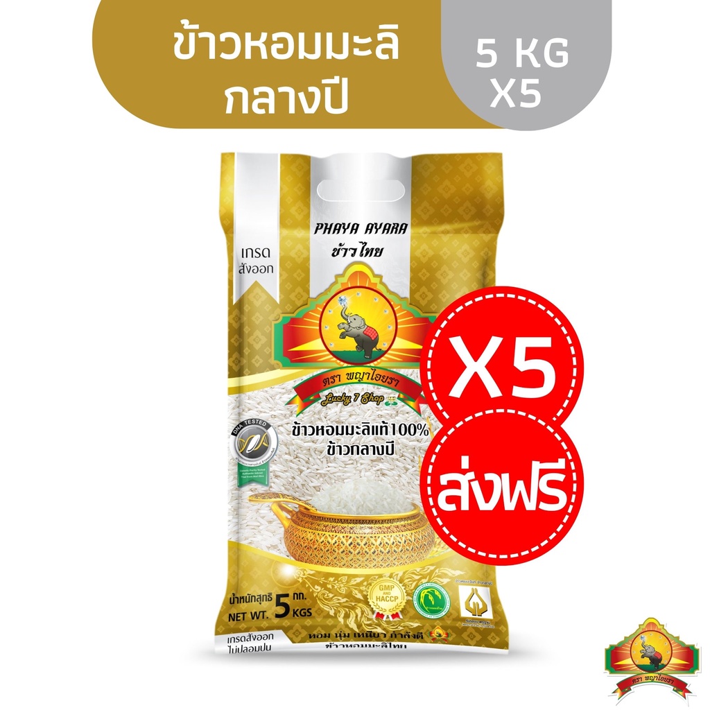 ซื้อในไลฟ์ ลดเพิ่ม120.- ใช้โค้ด25% (แพ็ก5)ข้าวหอมมะลิกลางปี(ปี68)ขนาด5KG เกรดส่งออก ตราพญาไอยรา