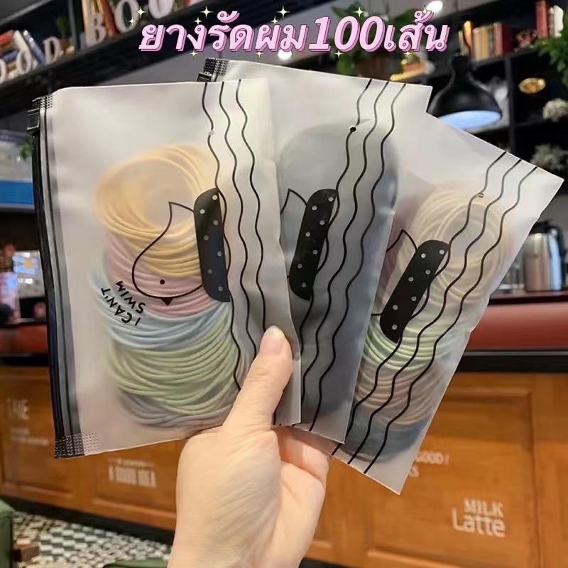 แพ็ค 100 ช ิ้น ยางรัดผมสไตล์เกาหลีสำหรับผู้หญิง พร้อมซองใส