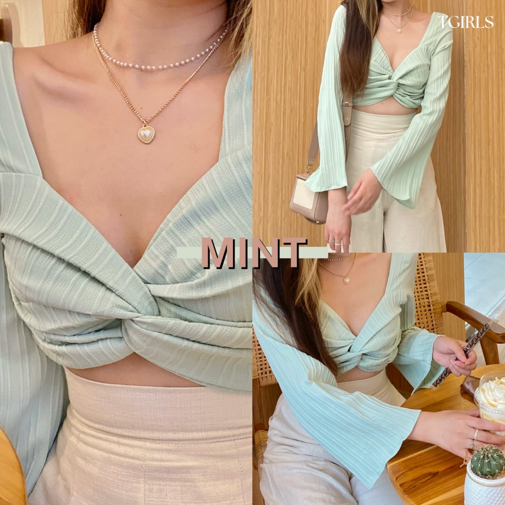 🎉โค้ดลด15บาท🔥Puffin เสื้อครอปแขนกระดิ่ง bell sleeve Tops เสื้อใส่เที่ยวคาเฟ่ สวยมากๆ