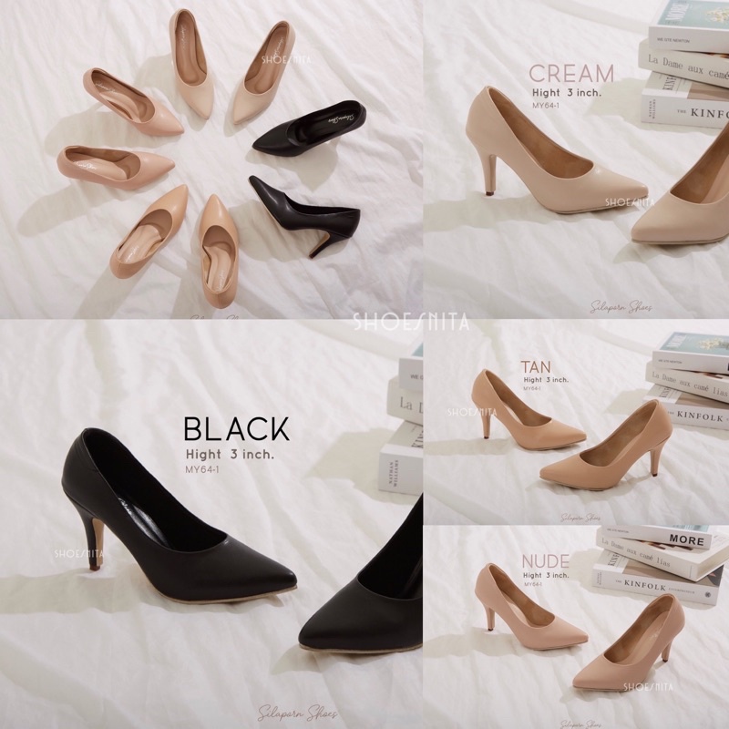 รองเท้าคัชชู หัวแหลม ส้นสูง 3นิ้ว หนังนิ่มใส่สบาย SHOESNITA