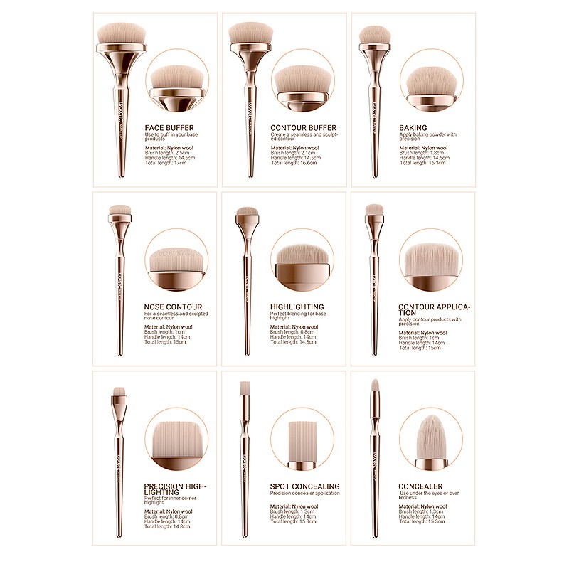 IMAGIC แปรงแต่งหน้า แปรงไนล่อน หลากหลายรูปแบบ สำหรับการแต่งหน้า 9 ชิ้น/ชุด