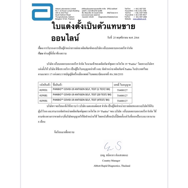 ชุดตรวจโควิดแอนติเจน ATK แบบHome Use Panbio Abbott 1 เทสต์/กล่อง WHO รองรับ