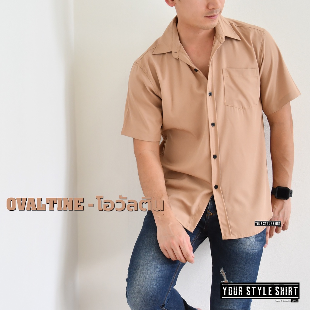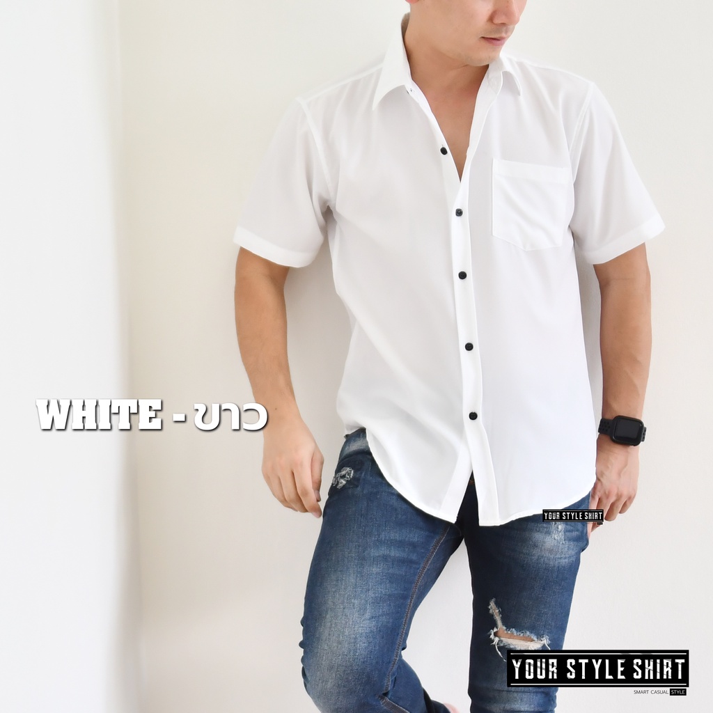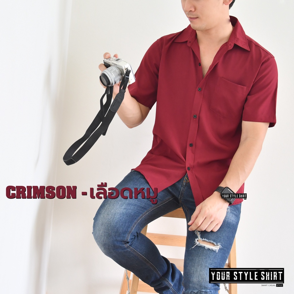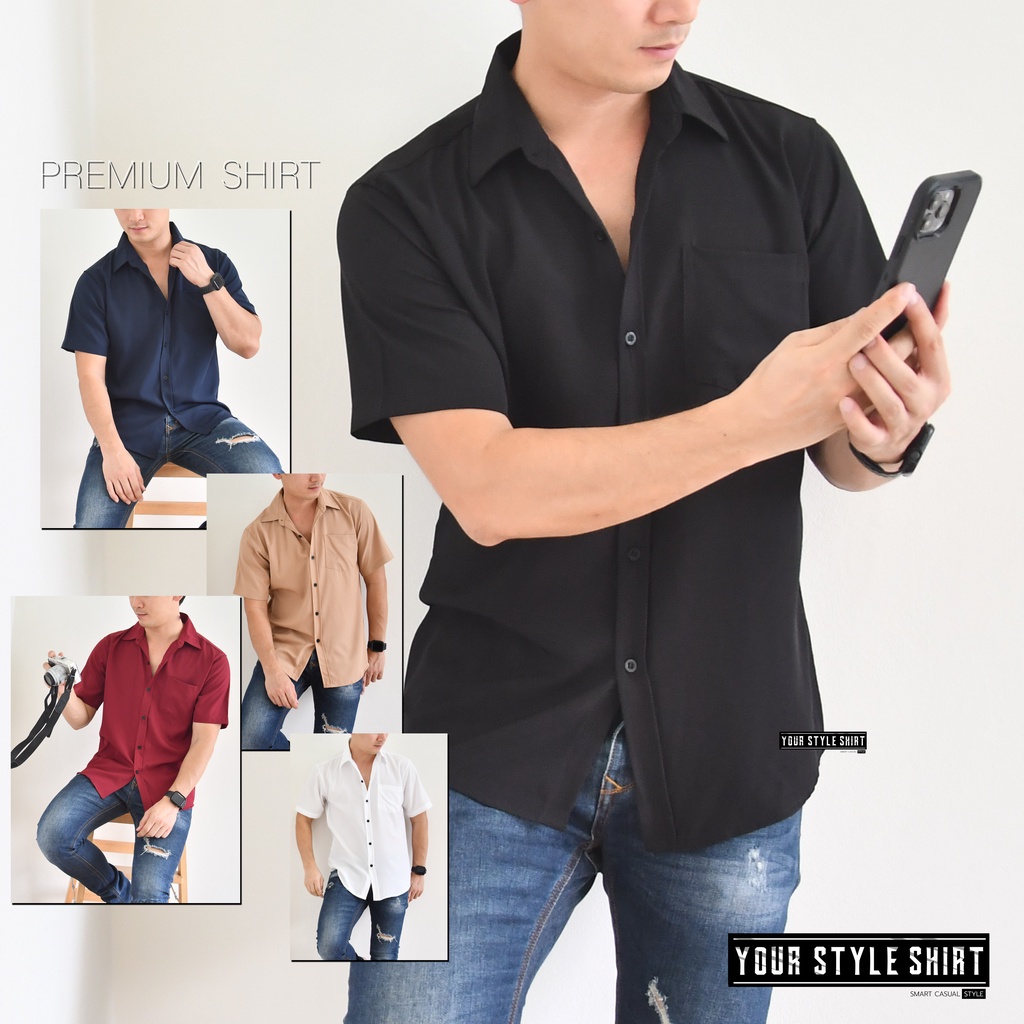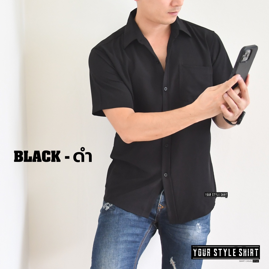 เสื้อเชิ้ตสีพื้น แขนสั้น (มี 6 สี) สำหรับผู้ชาย ผ้าไหมอิตาลีนำเข้า เกรดพรีเมี่ยม โคตsนุ่ม / เชิ้ตเกาหลี เชิ้ตแขนสั้น