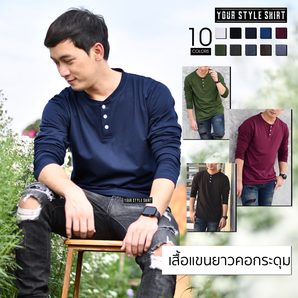 เสื้อแขนยาว คอกระดุม มี 10 สี ผ้าคอตตอน 100% เกรดพรีเมี่ยม ไม่หดไม่ย้วย ใส่ทนนาน เสื้อผู้ชาย เสื้อสีพื้น