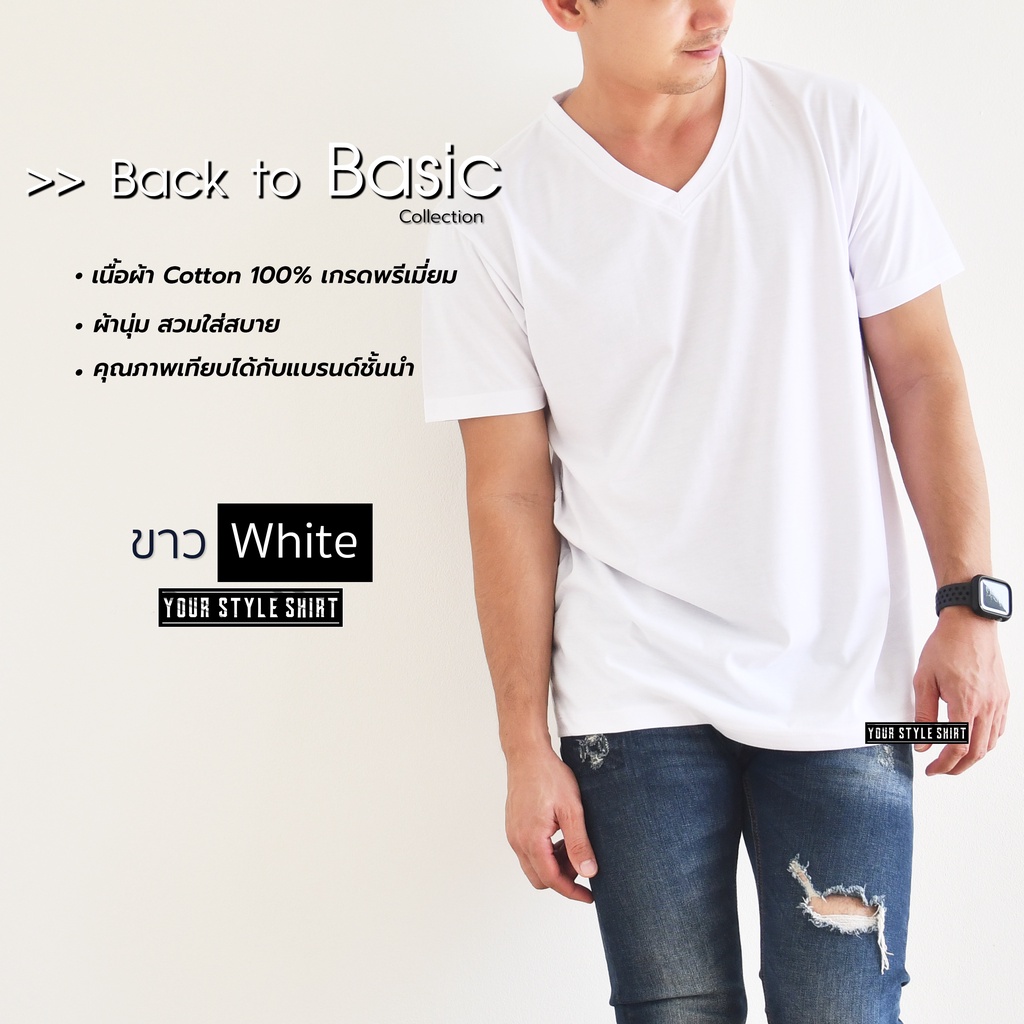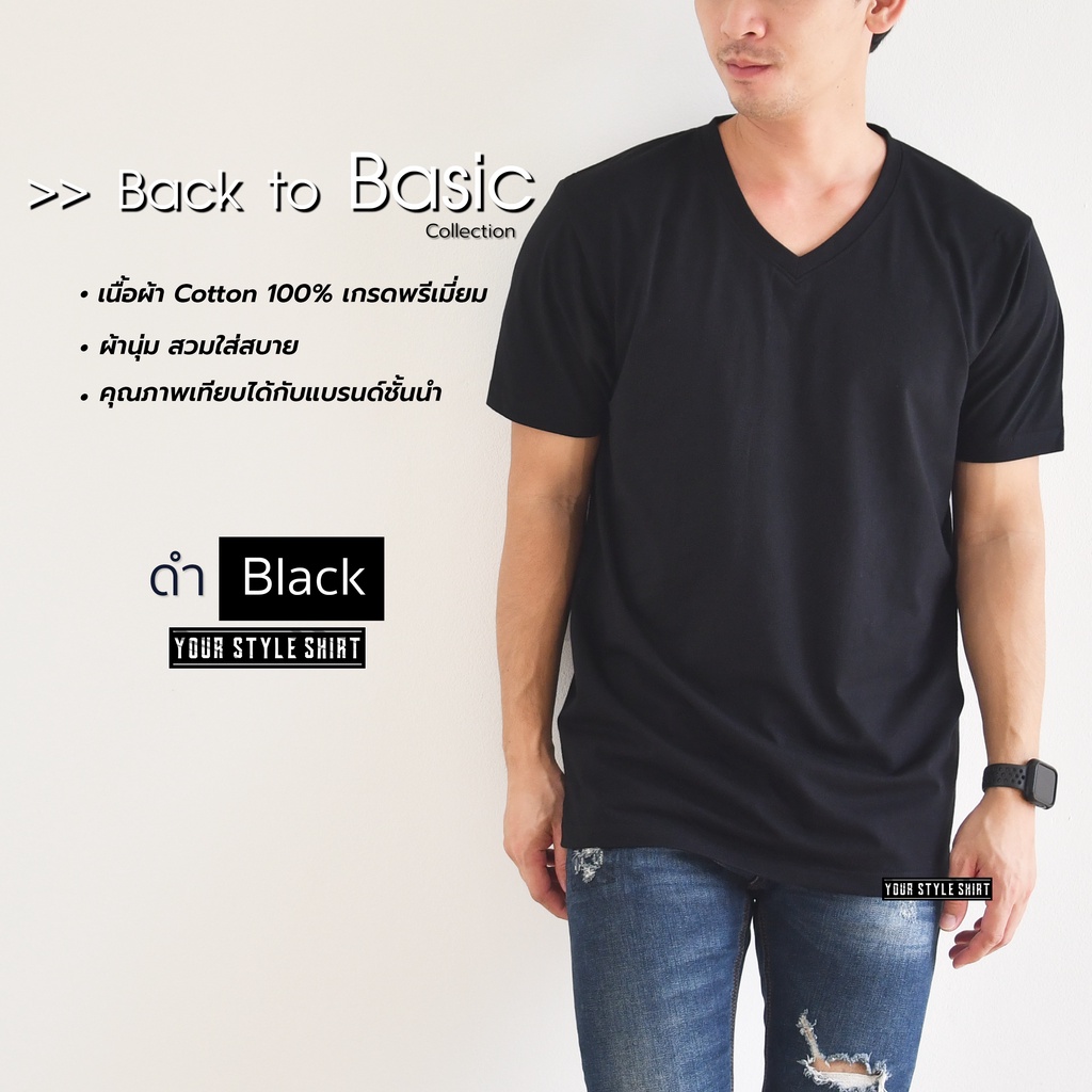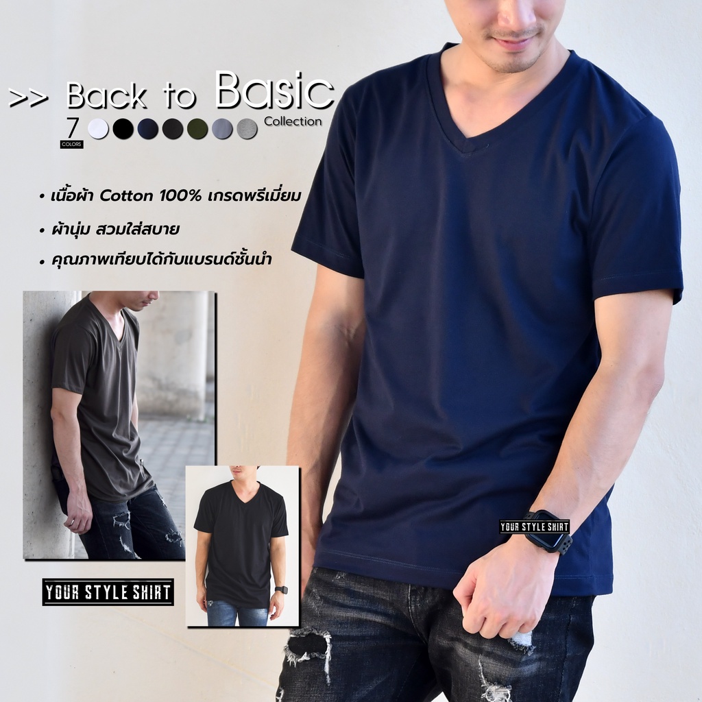 "Back To Basic" Collection เสื้อยืด คอวี (ผ้าคอตตอนเกรดพรีเมี่ยม) เสื้อคอวี