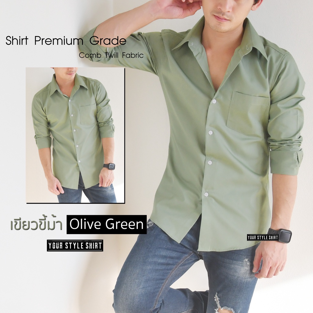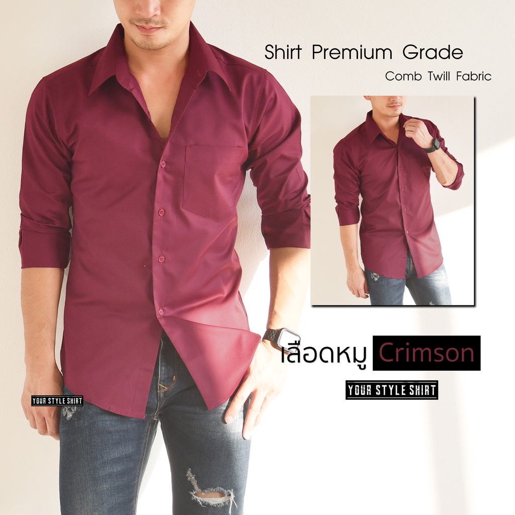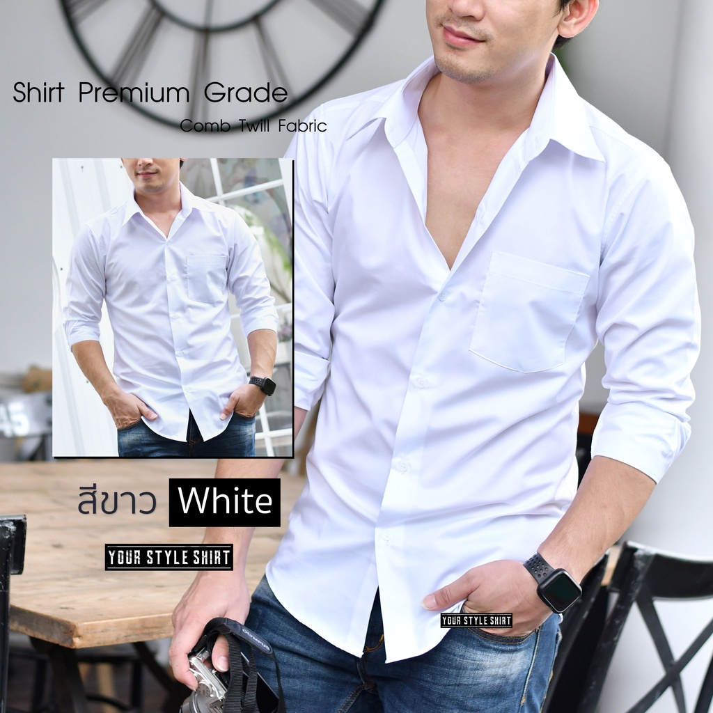 เสื้อเชิ้ต แขนยาว (มี 12 สี) สำหรับผู้ชาย ทรงเข้ารูป ผลิตจากผ้า Comb Twill เสื้อเชิ้ตแขนยาว เสื้อผู้ชาย เสื้อสีดำ