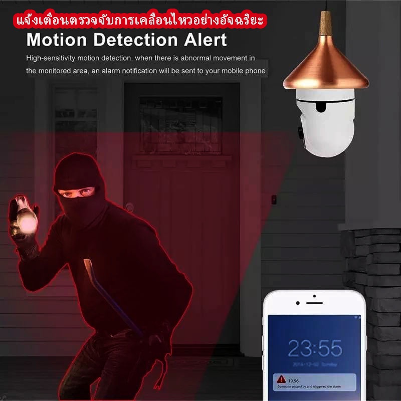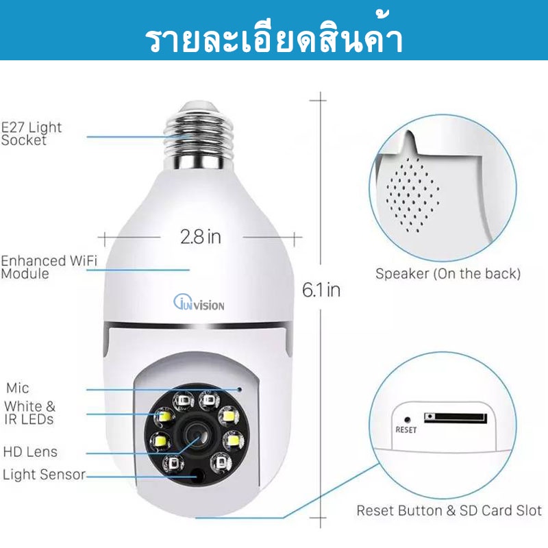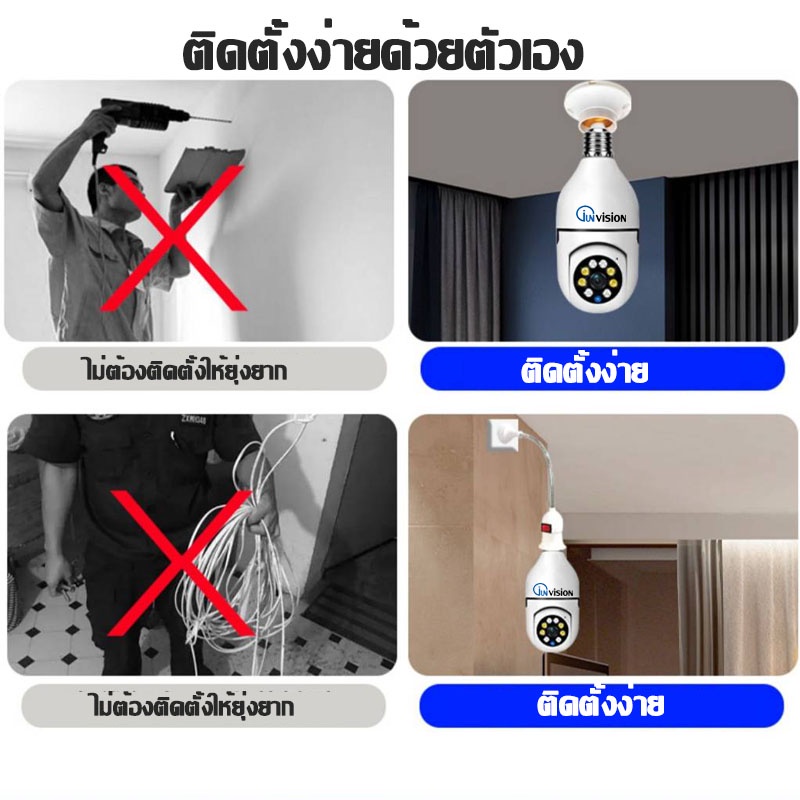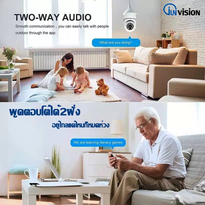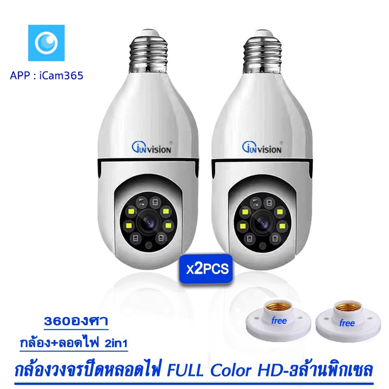 Junanvision กล้องหลอดไฟหมุน 360 องศา camera cctv ดูผ่านมือถือ 2 ล้านพิกเซล กล้องอินฟาเรด