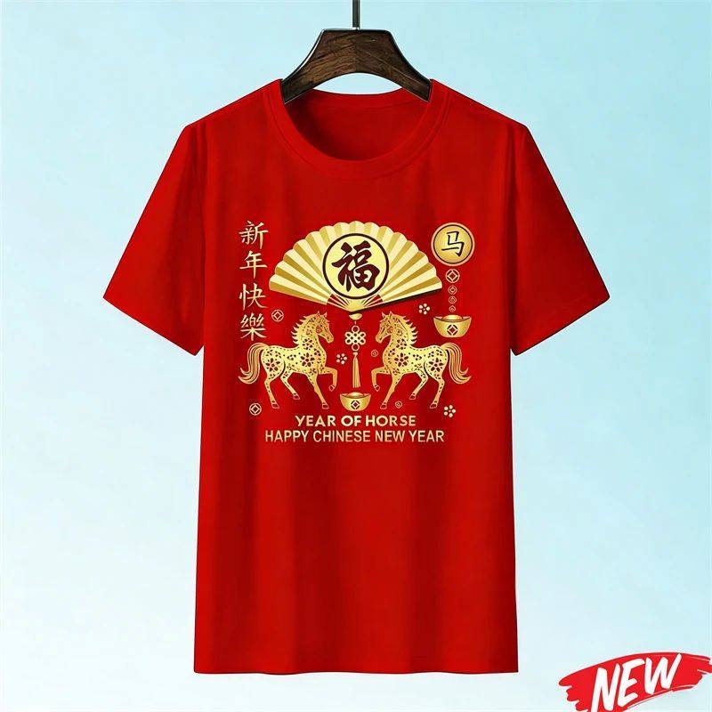 YOUNG T🔥🔥M~3XL เสื้อยืดม้าปีใหม่จีนสําหรับผู้ชาย/ผู้หญิง SIZE คอกลม แขนสั้น เสื้อยืด​ สีทึบ เสื้อยืดเข้ารูป 2026