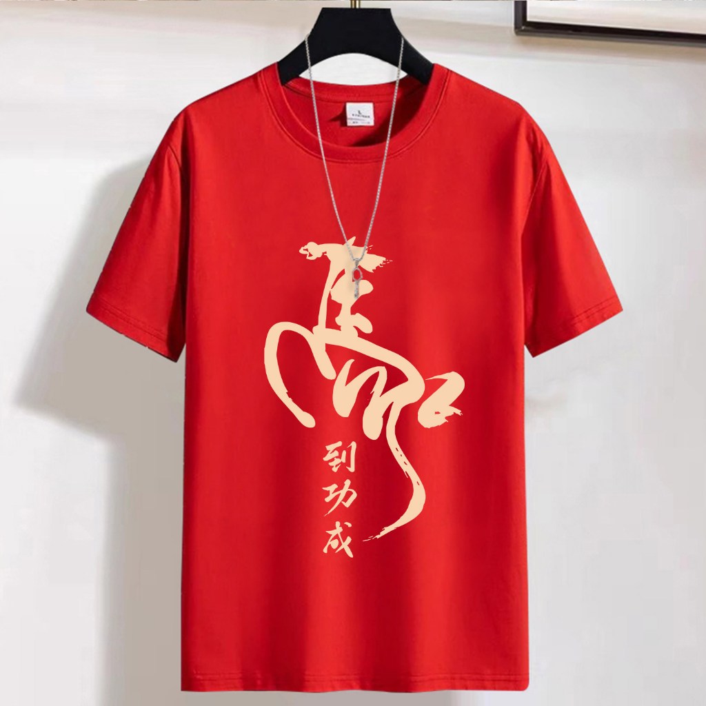 🔥🔥เสื้อยืดสีแดง คอกลม-แขนสั้น สำหรับปีใหม่ตรุษจีน ปีมะเมีย ดีไซน์สกรีนลายนักษัตร ทรงโอเวอร์ไซส์ นุ่มและระบายอากาศดี